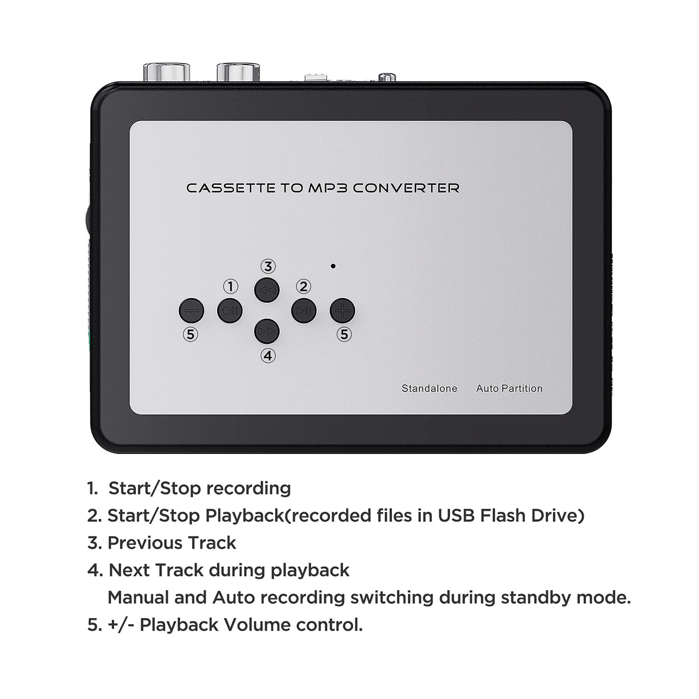 Ezcap Cassette To Mp3 Converter, Digital Cassette Player Converts Tape To Mp3 Into Usb Flash Drive, No Pc Required No Bluetooth