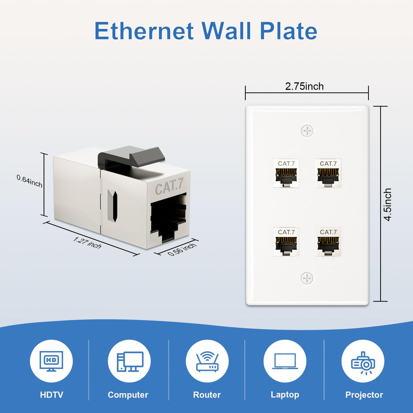 Fgb 1 Port Keystone Wall Plate With Mouting Bracket And Cat7 Shielded Rj45 Keystone Coupler Home Or Office Application You Can Decorate The Walls In Your Home Or Office To Hide Cables. The Female To Female Cat7 Keystone Coupler And Single Gang Ethernet Wall Plate Provide Comprehensive Solution For Networking, Audio, Video And More Diy Project. Feature [10 Gbps Transmission Speed] Complies With The Tia/Eia 568-C. 2 Standard And Performs At Category 7 Levels. [Safe Design] Abs Flame Retardant Material Ensures Safety. [Shielded Housing Design] Reduces Emi / Rfi Interference. [Gold-Plated Design] Rj45 Gold-Plated Contacts Effectively Reduce The Proximal Crosstalk And Resist Corrosion. [Snap-In Design] Rj45 Keystone Coupler Can Snap Right Into The Fgb Wall Plate And Hold Tightly. [Pluggable Design] The Plug-And-Play Design Is Adaptable For Use In A Range Of Circumstances. [Easy To Install] Only One Screwdriver Can Complete The Installation Of The Network Wall Plate.