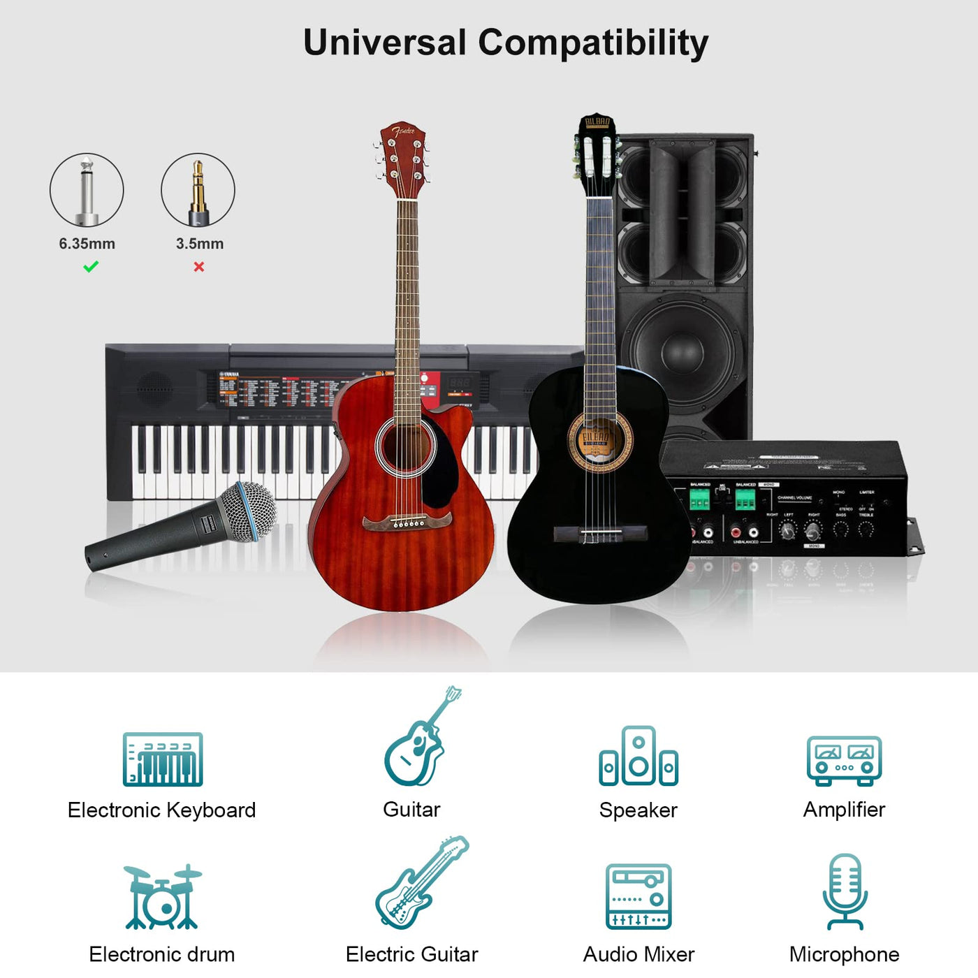 ?High-End Material?The Interface Is Made Of Chrome Plated Copper, Stable Transmission, And Will Not Oxidize. Anti-Bending Tail Design, Spring Kink Protection, Breaking Test 10000+. Double-Layer Nylon Braided Cable Is Durable And Long Life, Ensuring The Audio Cable Minimizes Any Damage From Dropping, Pulling, Bending, Twisting. | ?Hi-Fi Sound Quality?Constructed With High-Purity Oxygen-Free Copper Conductor, Carbon Fiber Shield, And Chrome-Plated Copper Connectors For Double Noise Reduction To Minimize Signal Interference. You Can Easily Connect An Electric Guitar, Bass, Or Keyboard To An Amplifier Or Any Audio Equipment That Supports Mono Or Stereo Signals. | ?Highly Compatible?Fibbr Professional Premium Quality 6.35Mm Jack 1/4' Ts Instrument Lead Cable, Suitable For The Audio Connection Between 6.35Mm Audio Equipment. Compatible With Instruments Such As Guitar, Microphone, Synths, Keyboards, Electric Guitar, Bass, Keyboards, Electronic Drum, Pedal Effects, Amplifier, Audio Mixer, Speaker, Studio Harmonizers, And Other Professional Audio Equipment With 1/4 Inch Input. | ?Perfect Sound Effects?The Nylon Braided 6.35Mm Guitar Jack Instrument Lead Speaker Cable With Low Noise Resistance, Can Offer The Superior Sound Experience To You, Allowing You To Enjoy Louder And More Clear Music On High-End Audio Output Devices. | ?Intimate Customer Service?Every Product Is Thoroughly Tested Before Being Sold. We Offer An 18-Month Manufacturer'S Guarantee And Lifelong Friendly Service Support. You Deserve To Have This 6.35Mm Stereo Audio Cable, Click The Yellow Button To Shop Without Risk 'Buy Now'.