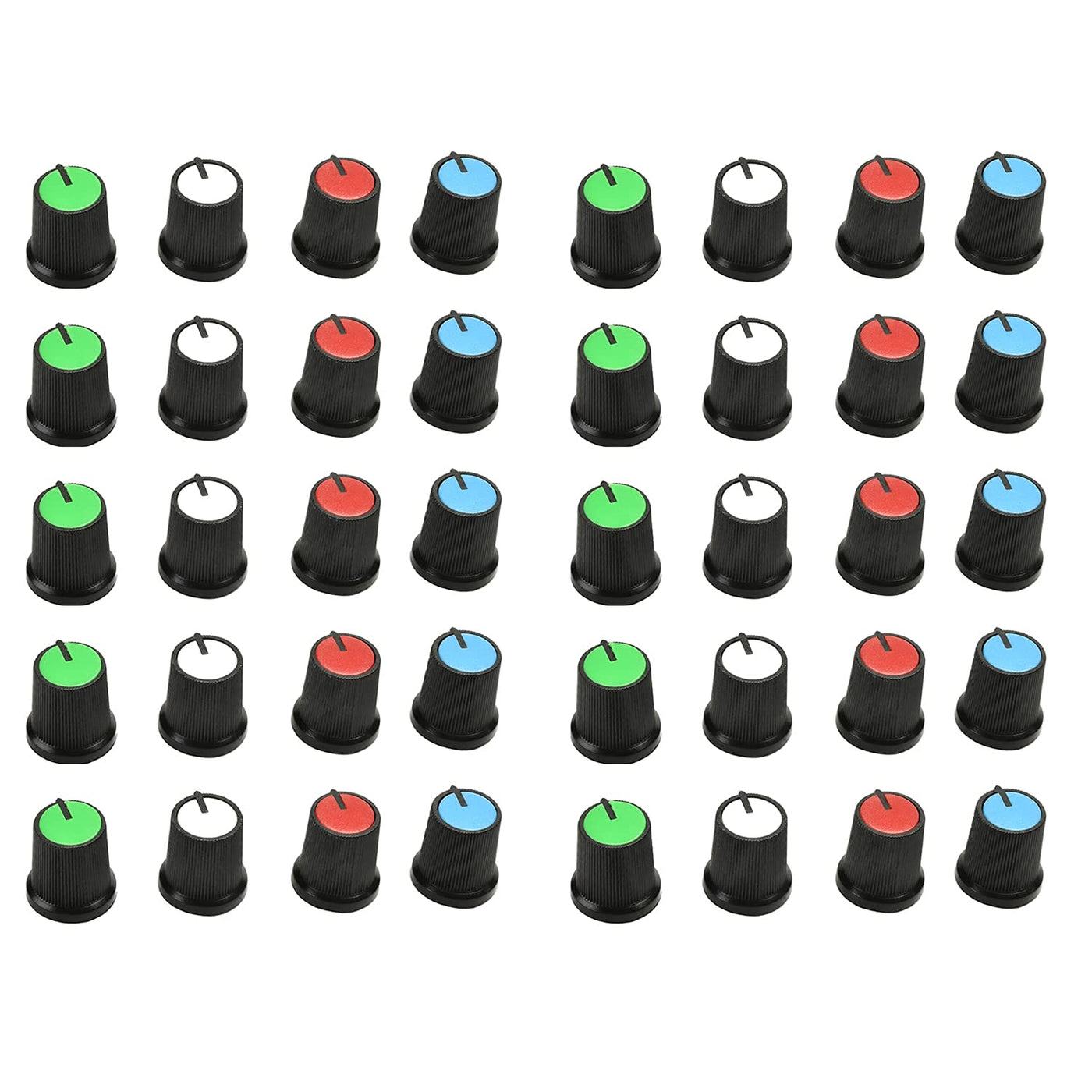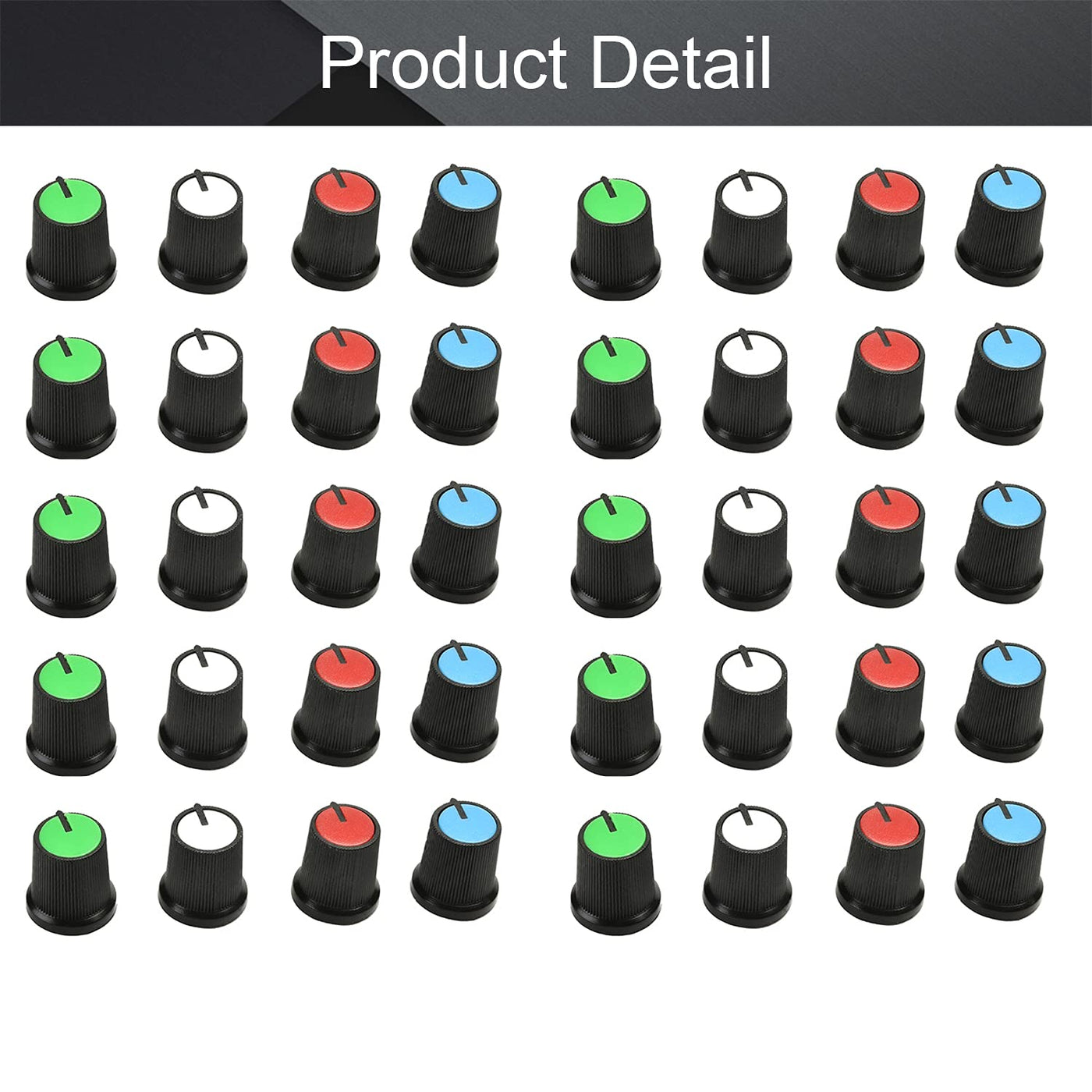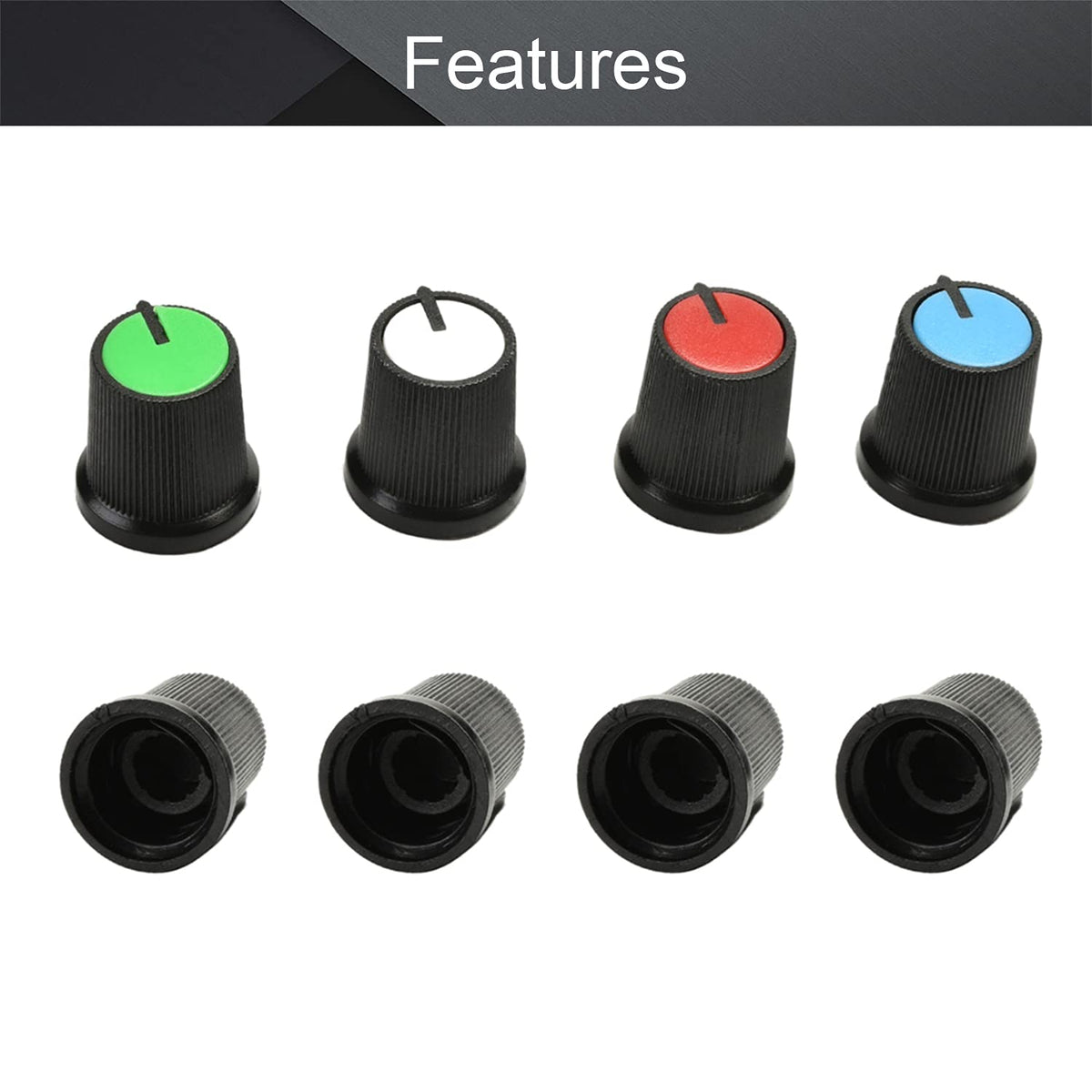Fielect 60Pcs Potentiometer Control Knob 6Mm Potentiometer Volume Control Rotary Knob Cap 15X15Mm Rotary Potentiometer Knob Cap White And Green And Blue And Red