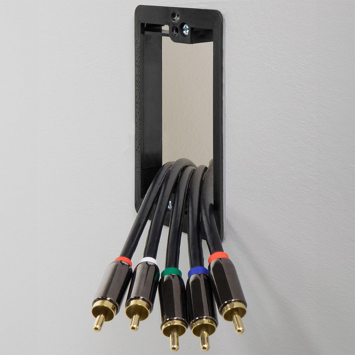 Q: What types of cables can be used with the Fosmon Low Voltage Mounting Bracket?A: The Fosmon Low Voltage Mounting Bracket is designed for various low voltage cables, including speaker wires, coaxial cables, HDMI cables, and network cables, making it versatile for multiple audio and video setups.