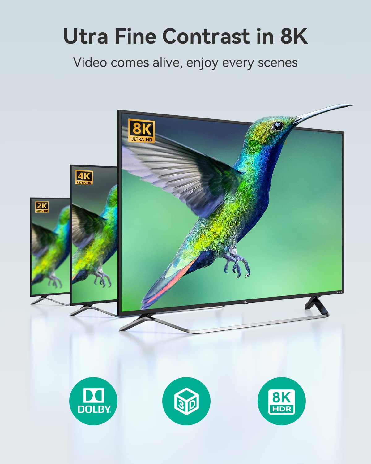 Q: What resolutions does the GANA HDMI 2.1 Switch support?A: The GANA HDMI 2.1 Switch supports ultra-high-definition resolutions including 8K at 60Hz, 4K at 120Hz, and is backward compatible with 2K at 240Hz and 1080P at 240Hz, providing you with exceptional video quality.