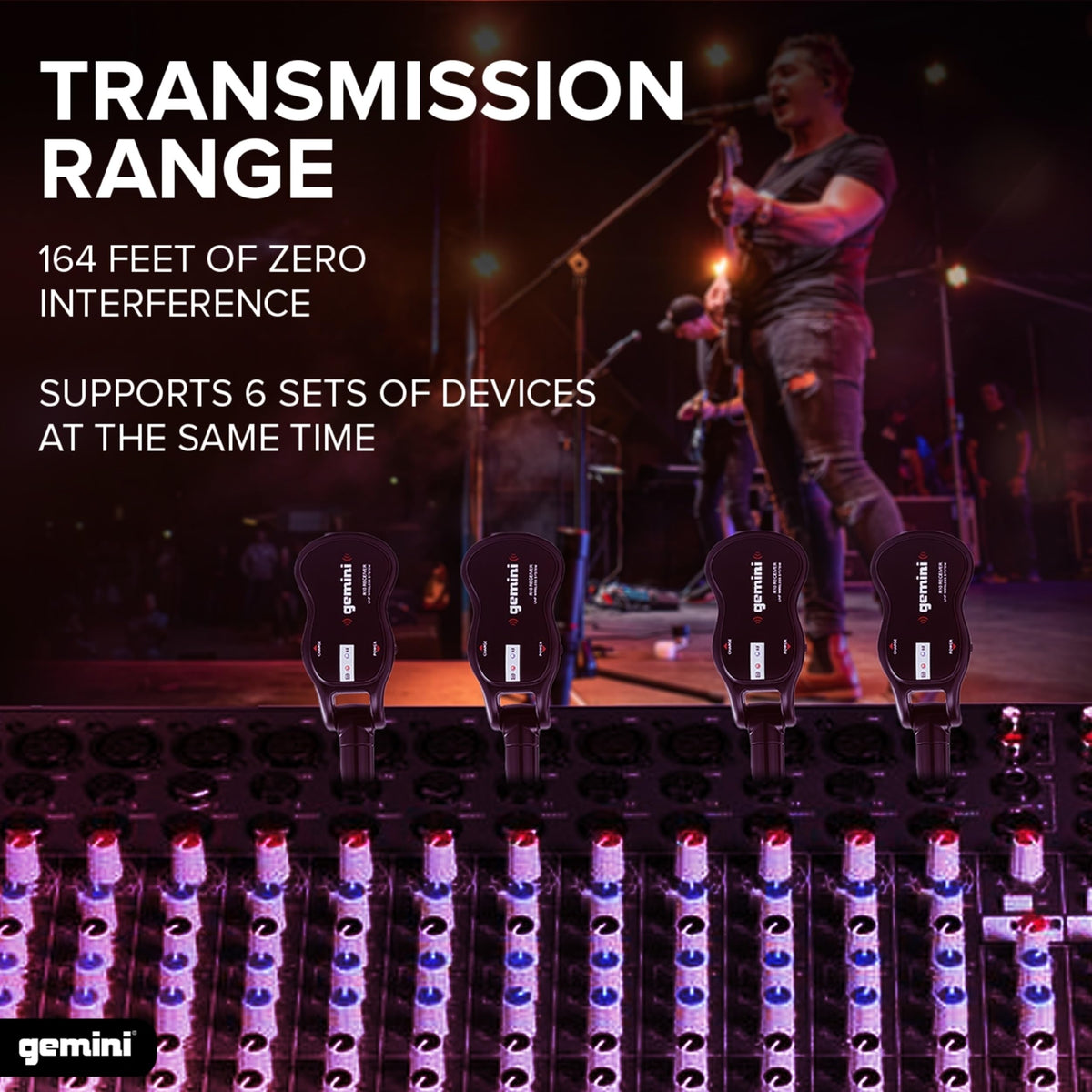 Gemini Sound Gmu G100 Uhf Wireless Guitar System, Rechargeable 1/4' Transmitter & Receiver, 50+ M Range, Low Latency, Expandable For Electric & Acoustic Guitars, Bass & Keytar