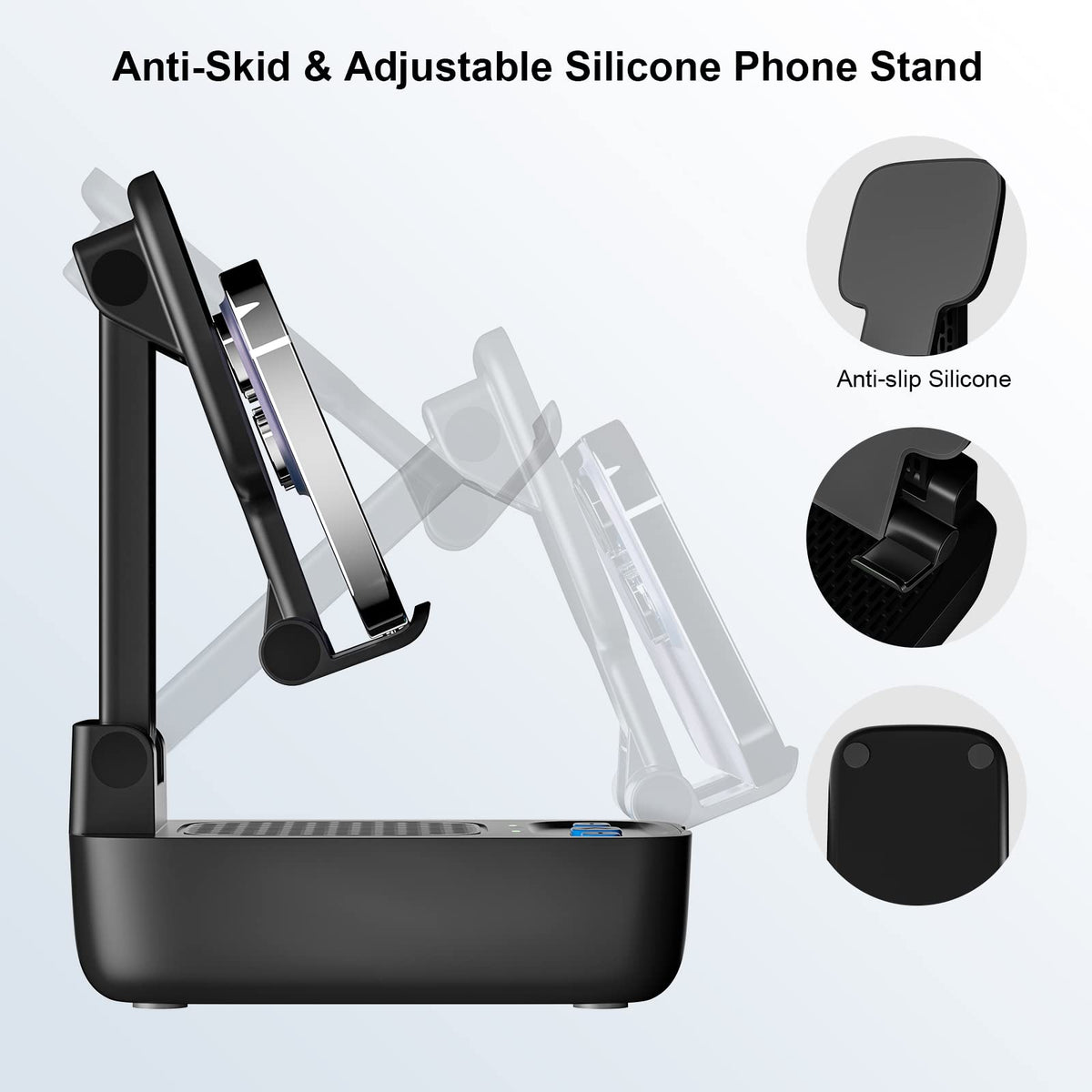 Comiso Cell Phone Stand With Wireless Bluetooth Speaker, Anti-Slip Mobile Phone Holder Compatible With Phone & Tablets, Hd Bass Surround Sound Speaker For Home Cinema & Outdoor, Gifts For Men Women