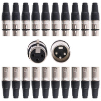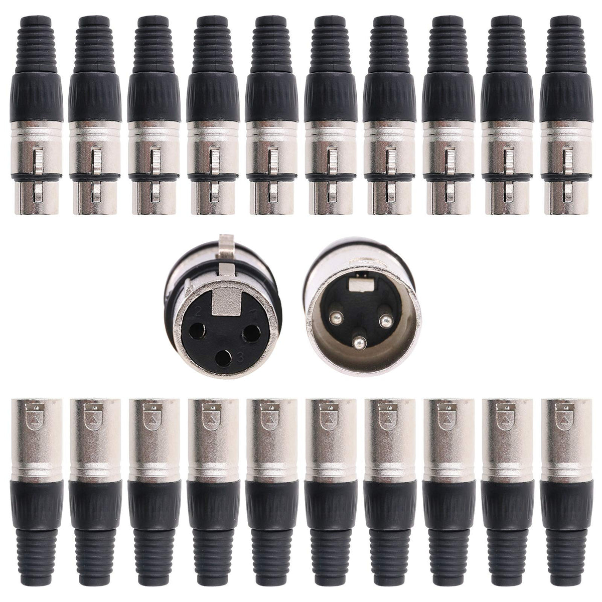 Glarks 20 Pack Xlr 3 Pin Male/Female Plugs Audio Mic Microphone Cable Plug Connector Audio Socket, Black Sliver Housing