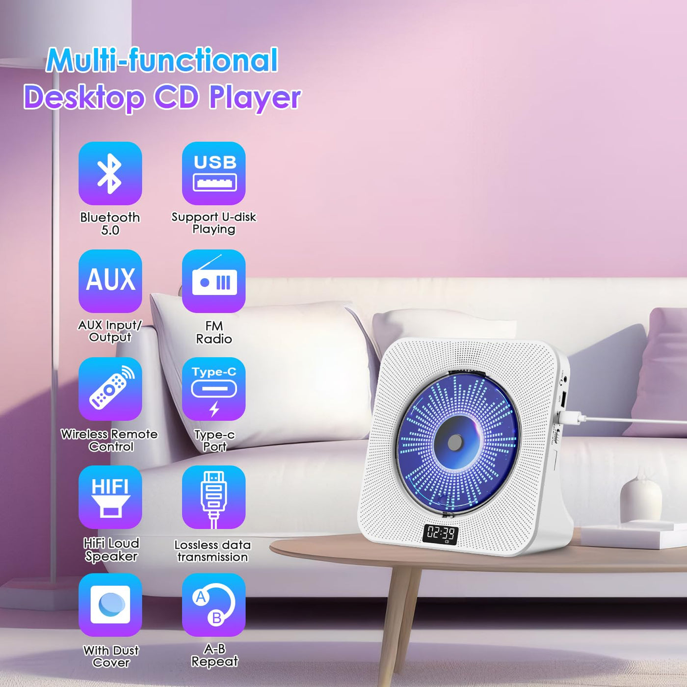 Gueray Cd Player Portable Bluetooth Desktop Cd Player For Home With Lcd Display & Timer