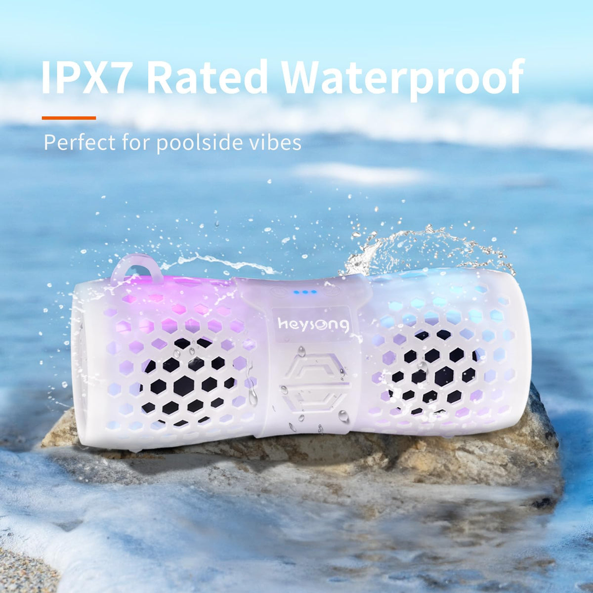 Heysong Bluetooth Speaker, Portable Waterproof Shower Speakers With Lights, Ipx7 Waterproof, Loud Sound, Floating, Travel Speakers For Pool, Beach, Kayak, Bike, Gifts For Men, Women, Teen