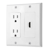 Double Gang Hdmi Ethernet Coax Wall Plate With 15Amp Power Outlet - 1 Port Hdmi Keystone Jack Wall Plate (White)