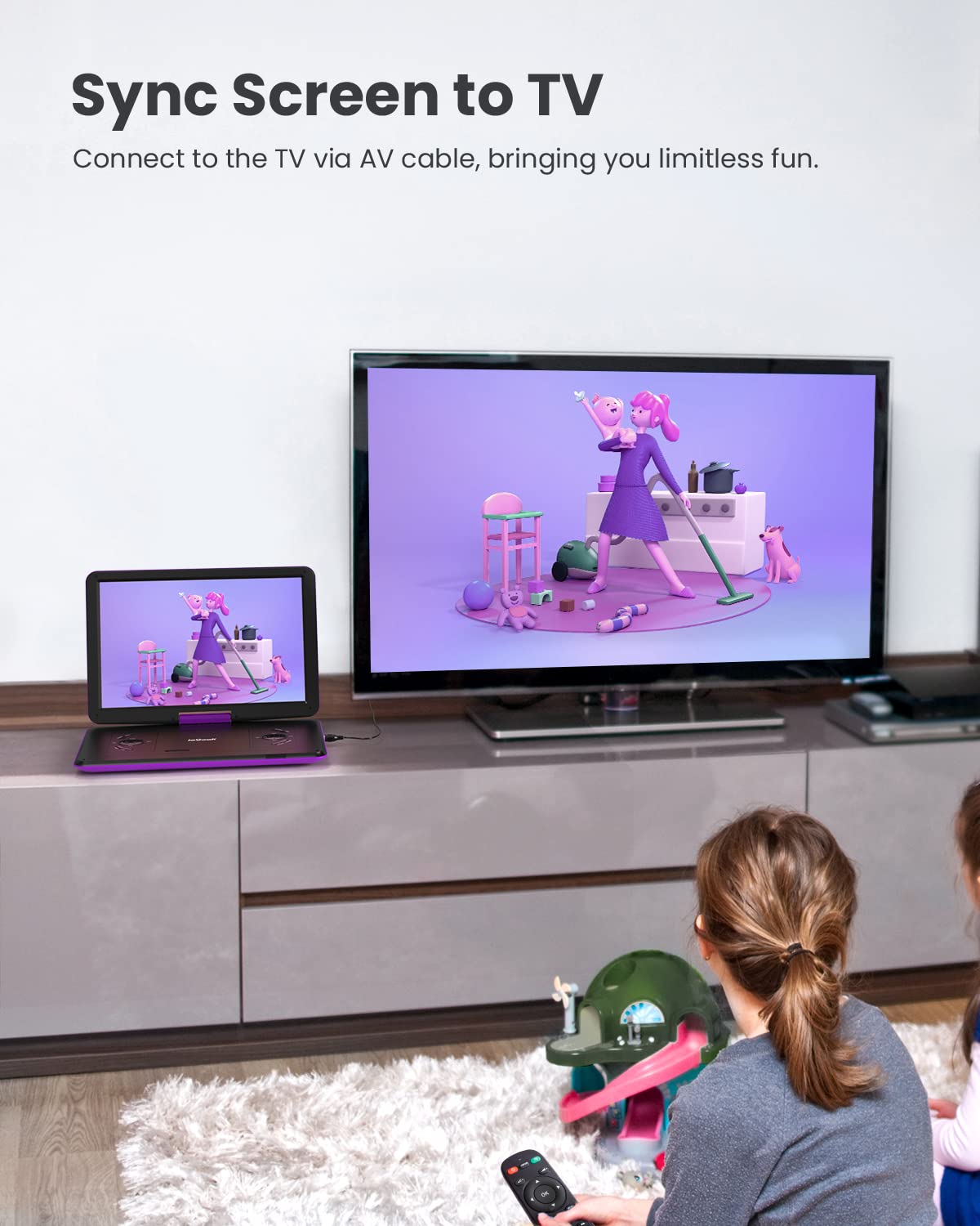 Iegeek 15.9'' Portable Dvd Player With 14.0'' Swivel Screen, 6 Hrs Rechargeable Battery, Car Dvd Player, Sync Tv, Region Free, Support Usb/Sd Card, High Volume Speaker, Remote Control, Purple