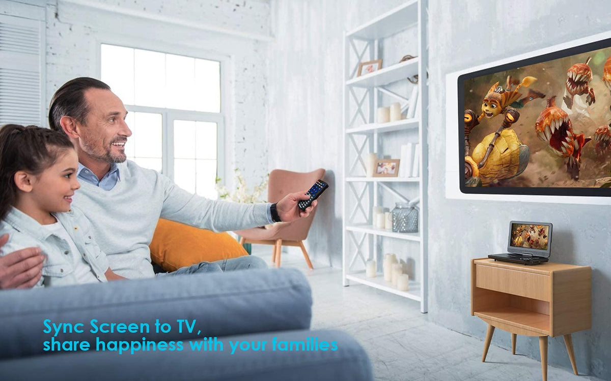 Q: Can I connect the ieGeek DVD player to my TV?A: Yes, the ieGeek Portable DVD Player includes an AV to RCA cable that allows you to connect it to a TV, enabling you to enjoy movies on a larger screen for a more immersive viewing experience.