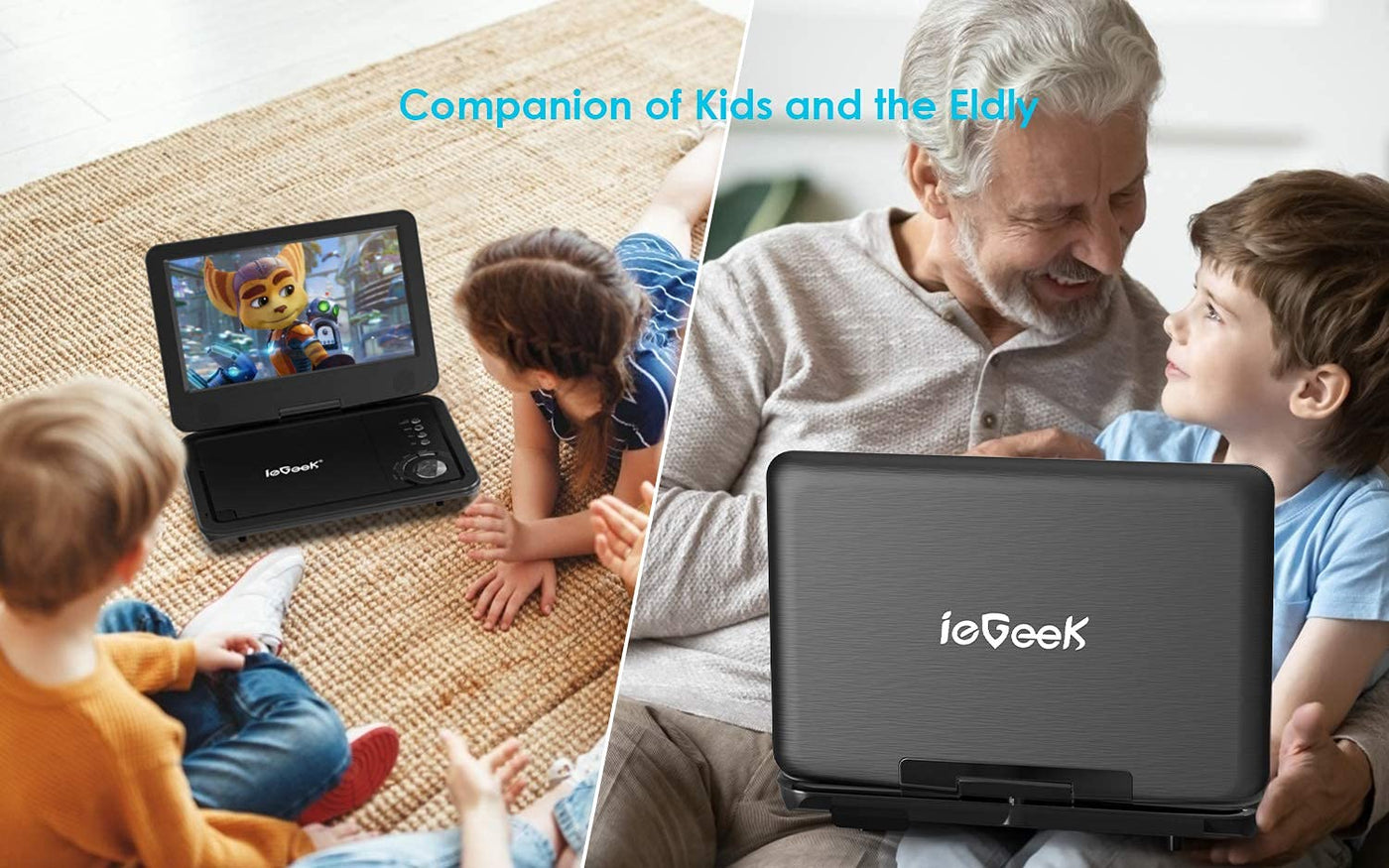 Q: Is the screen of the ieGeek Portable DVD Player adjustable?A: Absolutely! The 10.5-inch swivel screen supports 270 degrees rotation and 180 degrees folding back, making it easy to adjust the viewing angle for the best visual experience.