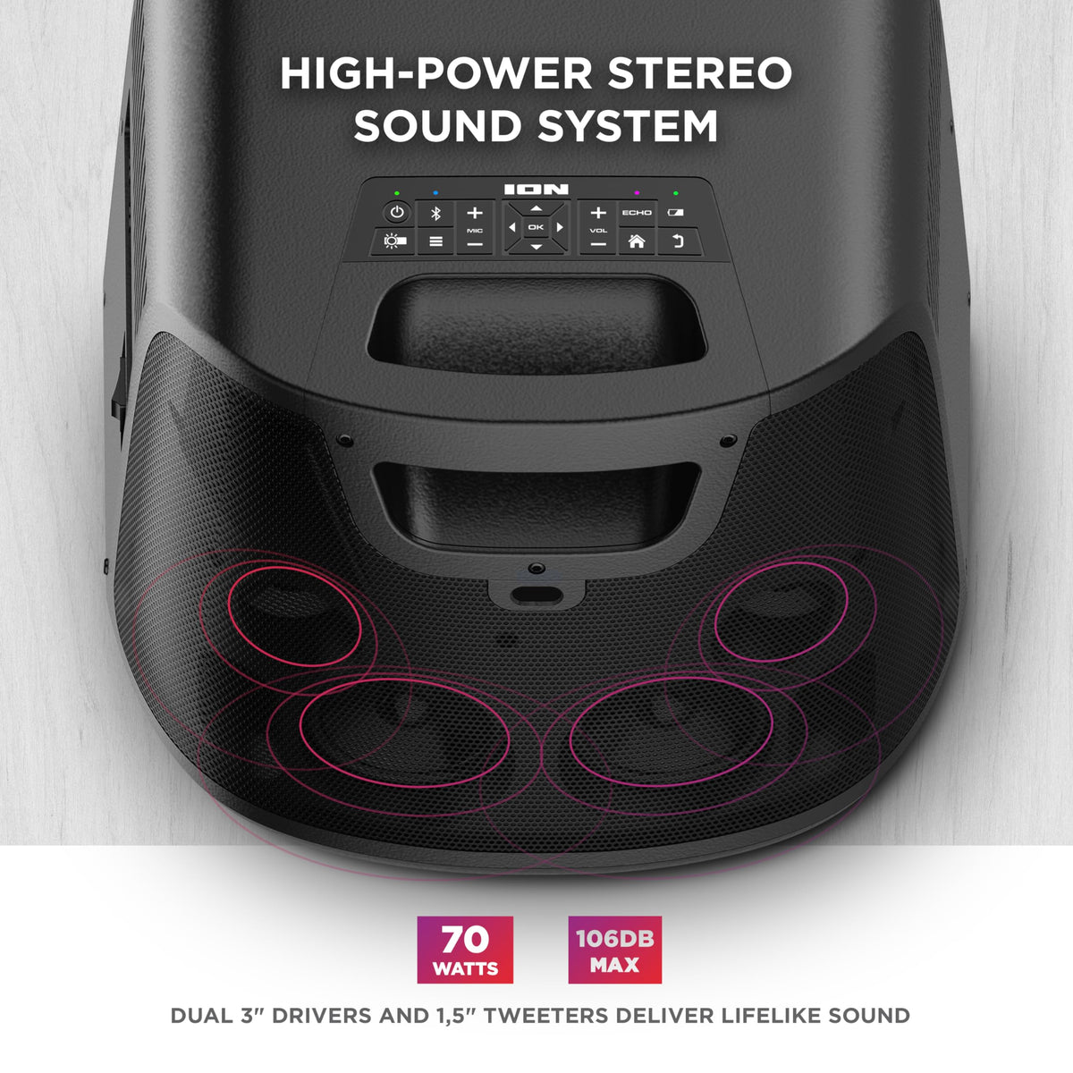Ion Portable Outdoor Led Projector With 70W Speakers, Bluetooth, Rechargeable Battery, Mic, Usb And Hdmi Connections, 720P Hd