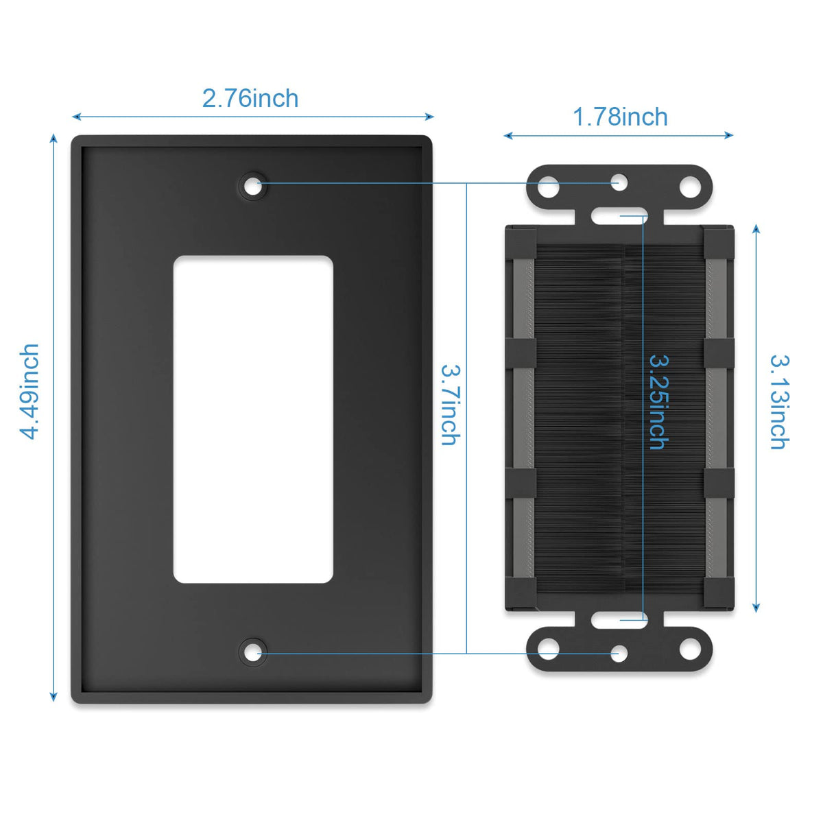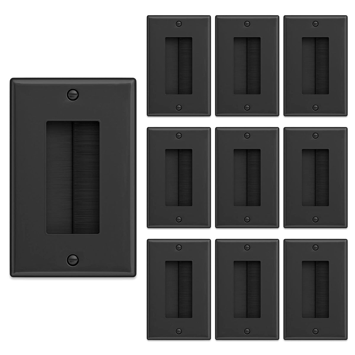 Iwillink Brush Wall Plate (10 Pack), Cable Pass Through Insert For Wires, Single Gang Cable Access Strap, Wall Socket For Hdtv, Home Theater Systems - Black