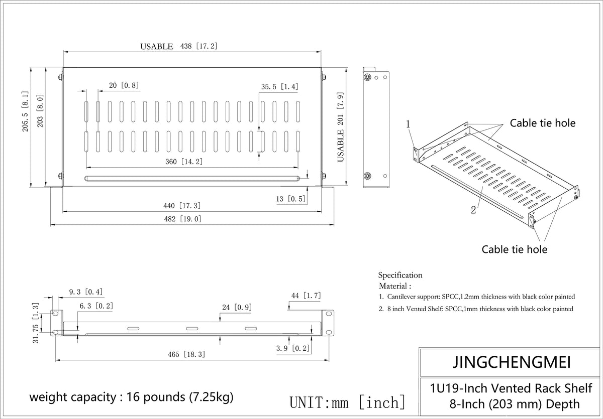 Jingchengmei 1U Vented Rack Shelf Universal Rack Tray No Lip For 19 Inches Network Cabinet Or Server Rack (8 Inches Deep)