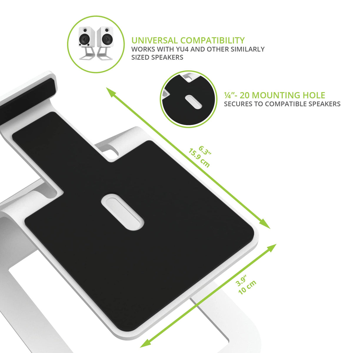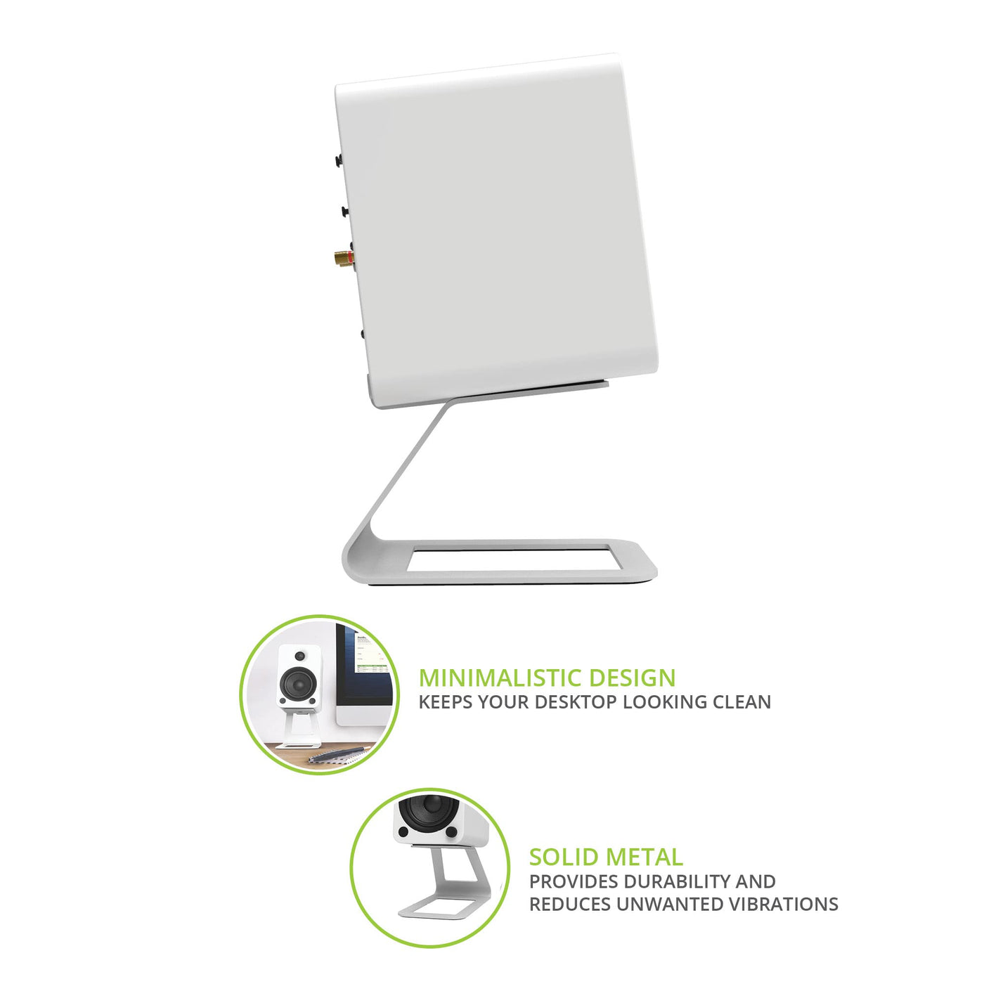 Reduced Resonance. Stellar Sound Quality. - The Se4'S Cantilevered Design And 2.0Mm Silicone Padding Absorbs Resonance From The Speaker Cabinet To Produce A Clean, Distortion-Free Sound. Use The Included Mounting Screws To Couple The Speaker And Stand Together To Increase The Mass Of Your Set-Up And Further Reduce Resonance. | Accurate, On-Axis Output - Elevate And Align Your Speakers With Your Ears So That You Can Enjoy Flawless On-Axis Sound And Prevent Reflection From Nearby Surfaces. | Safe And Secure - 2.0Mm Of Silicone Speaker Dampening Offer A High Grip To Keep Your Speakers And Stand Firmly In-Place. Mounting Screws Are Included To Help You Further Secure Compatible Speakers To The Stand. | Reclaim Your Workspace - Se4'S Clean, Clutter-Free Design Is Built So That You Can Place Extra Items Directly Below The Speakers, Maximizing The Utility Of Your Desk Surface And Using The Space Normally Taken Up By Traditional Speakers. | Minimalist Design - Who Says Functional Can'T Be Beautiful? The Se4 Stand Boasts A Minimal Design That Matches The Style And Color Of Other Kanto Accessories For A Clean, Consistent Look. Available In A Black Or White Finish.