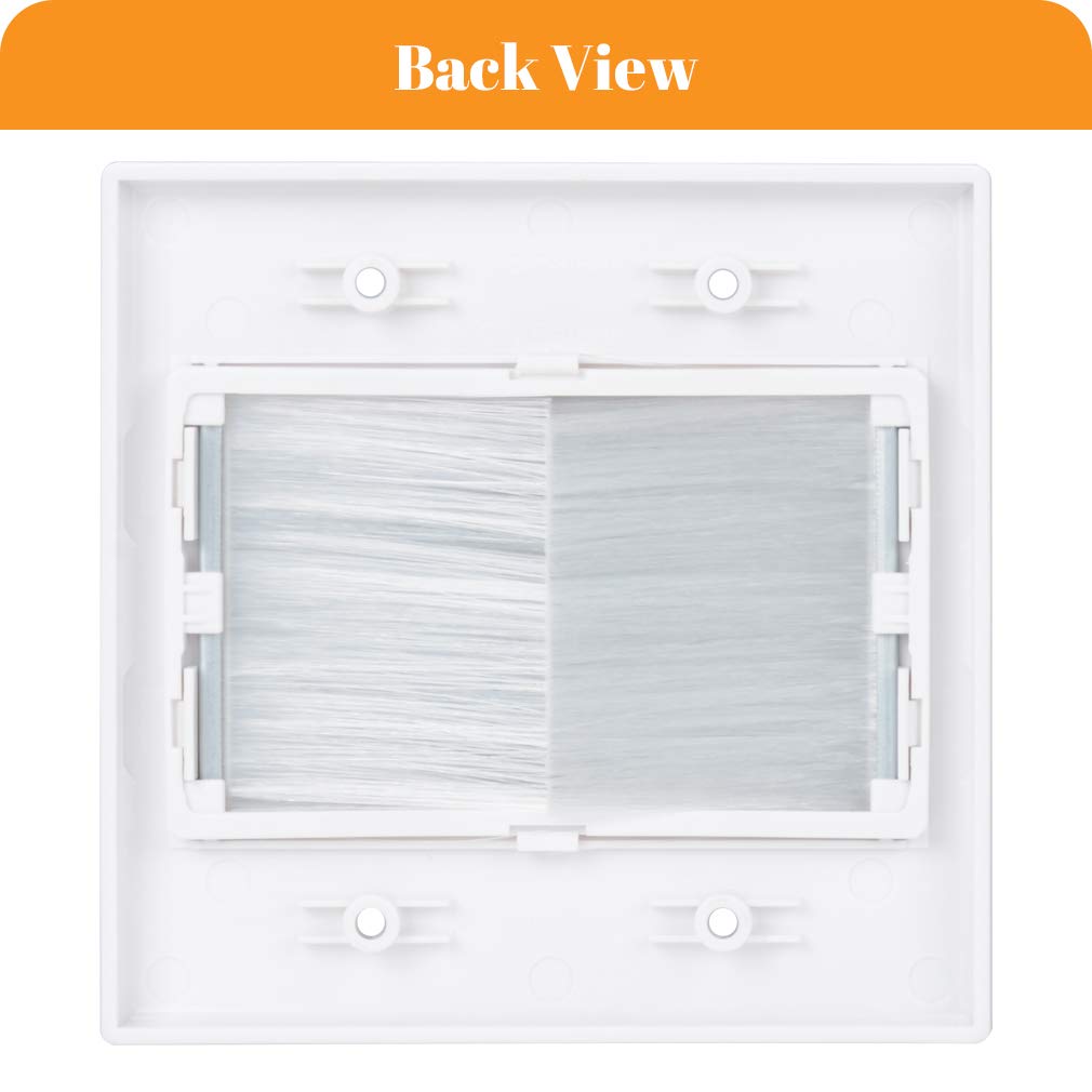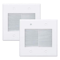 Kebulldola 2 Gang Brush Wall Plate White 2 Pack, Double Gang Cable Management Kit For Tv Coaxial, Hdmi, Ethernet Cables, Speaker