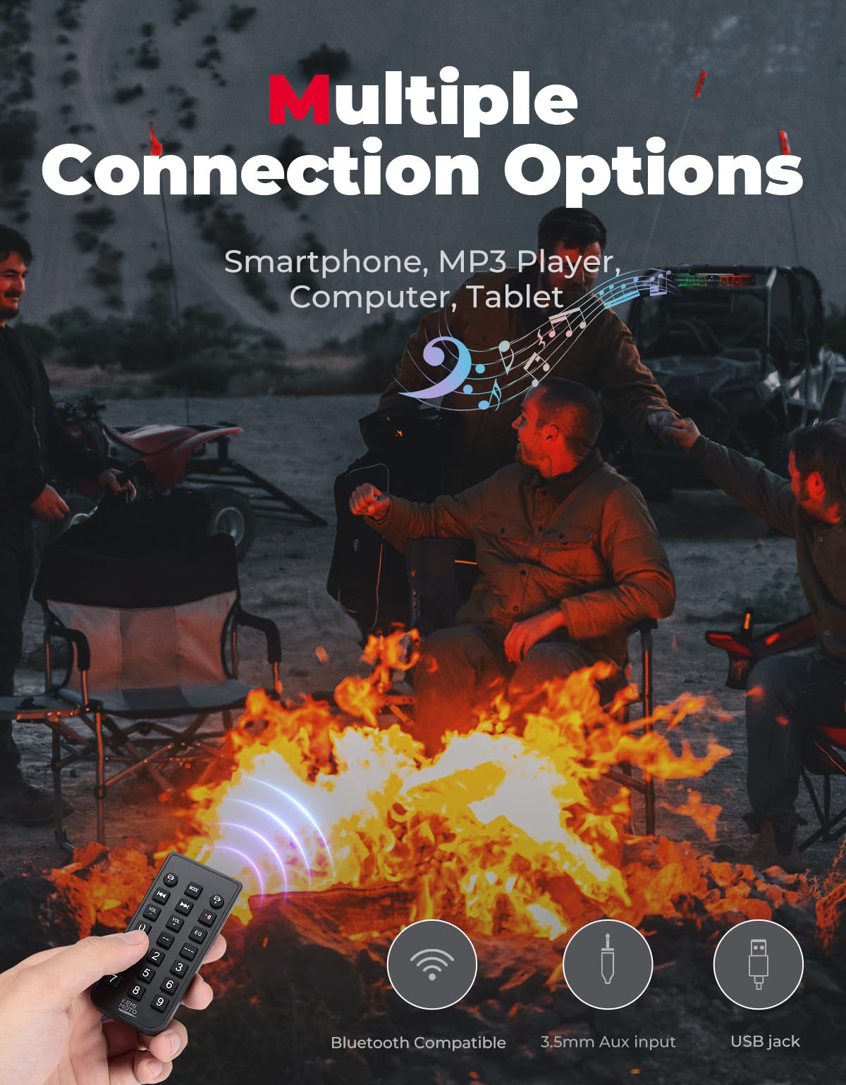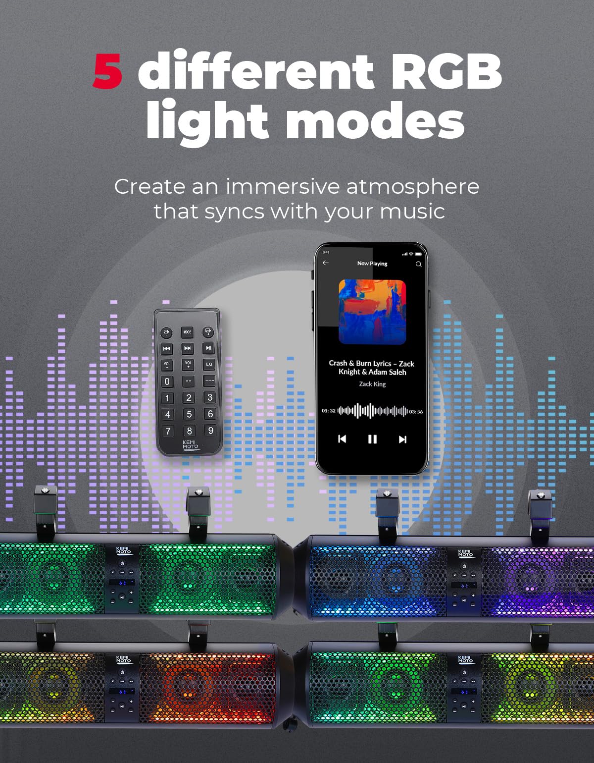 Kemimoto Rgb Utv Sound Bar With 2X&Nbsp;Tweeter And 4X&Nbsp;Subwoofer Compatible With Atv, Utv, Golf Cart, Marine And Other Outdoor Use. Feature:&Nbsp; 28 Inch Rgb Soundbar: Sync Your Lights To Music Bluetooth Compatible 3.5Mm Auxiliary Input The Usb Port Allows You To Quickly Insert A Usb Flash Drive And Access Your Music Library Wireless Remote Control 2X Tweeters And 4X Subwoofers 1.56'' To 2.25'' Adjustable Universal Clamps Design