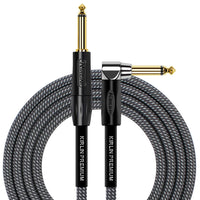 Kirlin Cable Iwb-202Bfgl-20Ca - 20 Feet - Straight To Right Angle 14-Inch Plug Premium Plus Instrument Cable, Carbon Gray Tweed Woven Jacket