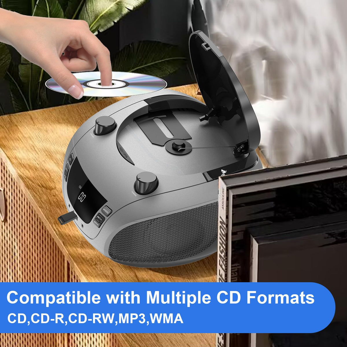Lonpoo Radios Portable Am Fm, Portable Cd Player Compatible Cd R/Rw/Wma And Mp3, Cd Radio With Bluetooth 5.3, Boombox Cd Player With Speakers, Usb Player, Ac/Battery Powered Cd Players For Home