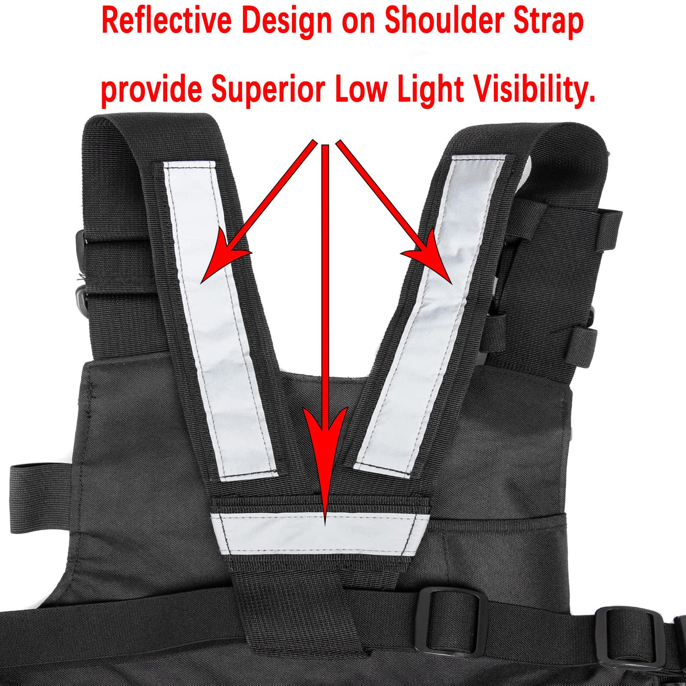 Luiton Radio Chest Harness With Reflective Strips Shoulder Holster Radio Vest Holder Two Way Radio Vest Rig Walkie Talkie Case With Front Pack Pouch For Motorola/Midland/Baofeng/Retevis
