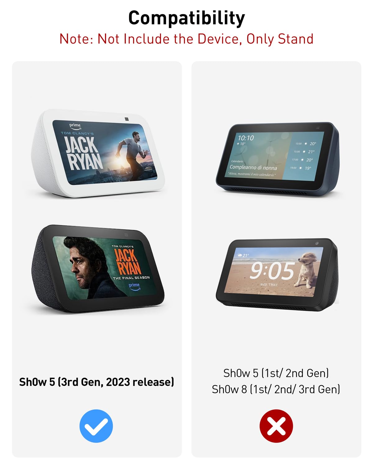 Maxonar Show Stands Are Specially Designed For Echo Show 5 3Rd Gen (2023 Release). Color Matched With Show 5. Not Compatible With Show 5 1St/ 2Nd Gen, Show 8 1St/ 2Nd/ 3Rd Gen. Note: Only Stand, Device Is Not Included.