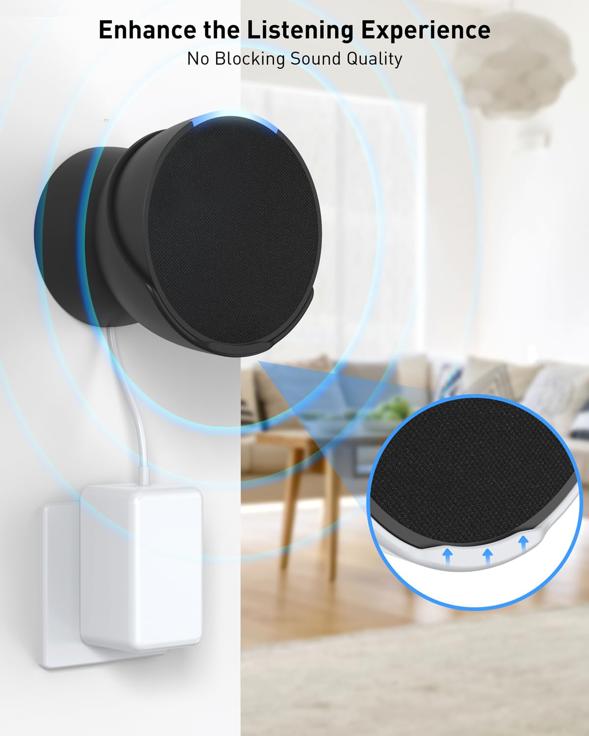 Maxonar Wall Mount, Echo Pop Wall Mount Smart Speaker Stand Holder Compatible With Google Nest Speaker Save Up Space Cable Management Black