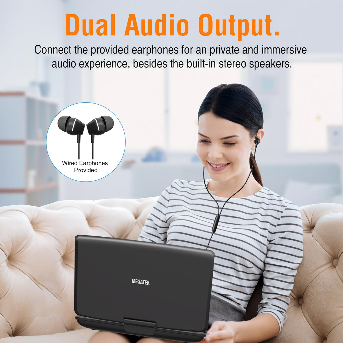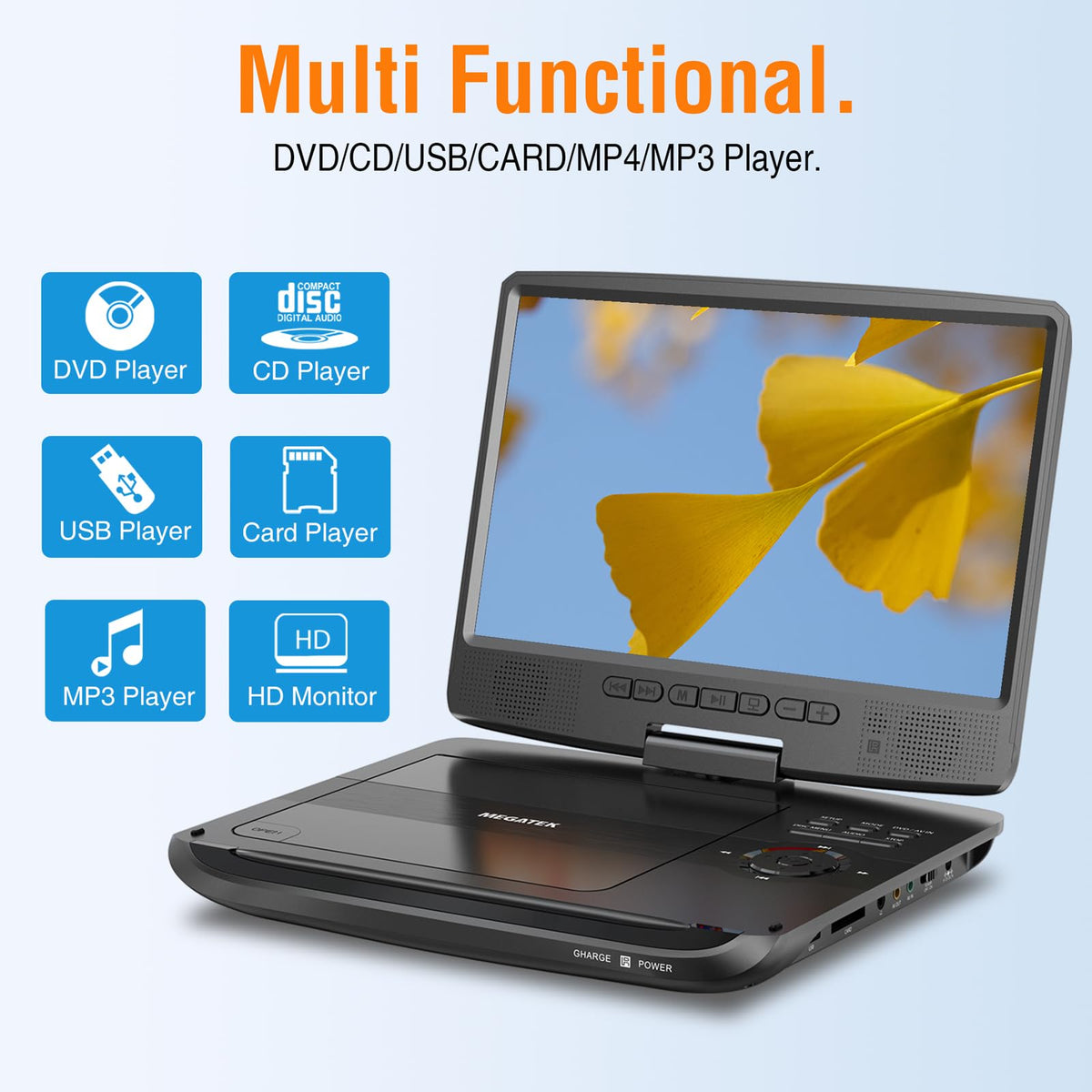 Megatek 12.5'' Portable Dvd Player With 10.5'' Hd Swivel Screen, Upgraded 6 Hour Rechargeable Battery, Play Cd/Dvd/Usb/Sd Card,