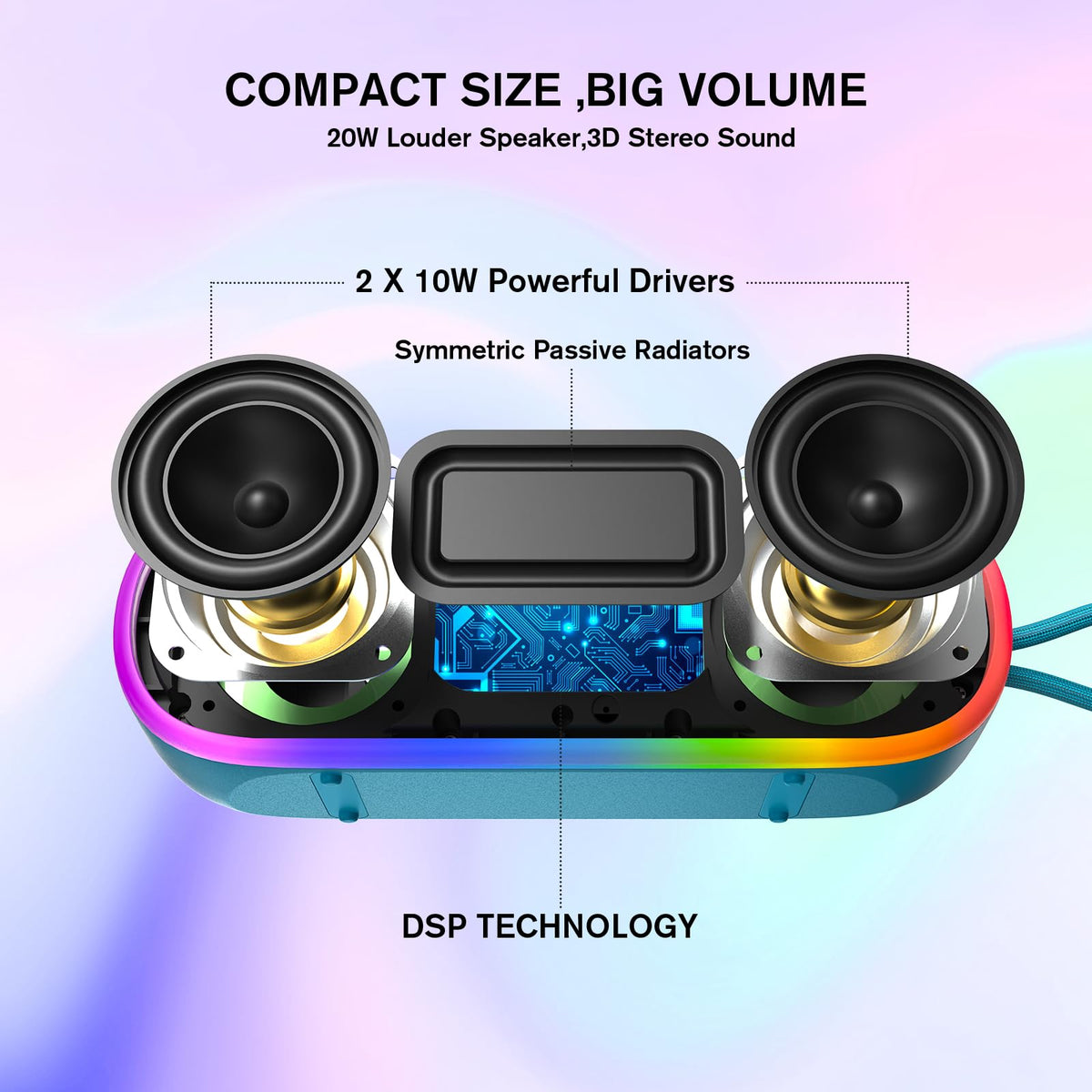 Meguo Bluetooth Speakers , Portable Wireless Speaker With 20W Powerful Drivers With Extral Bass,Ipx7 Waterproof Speaker ,Perfect Gift For Home And Outdoors ,For Friends And Family