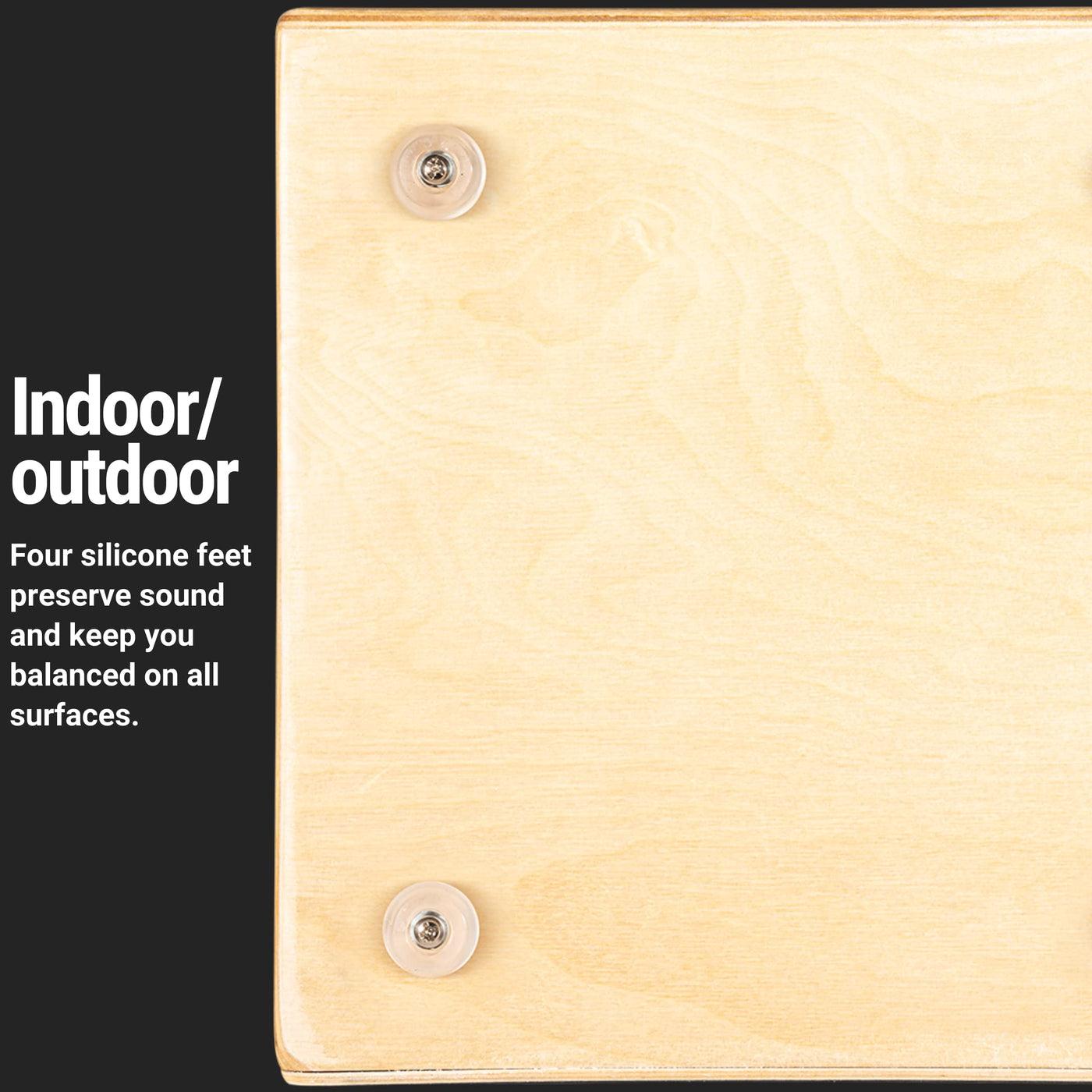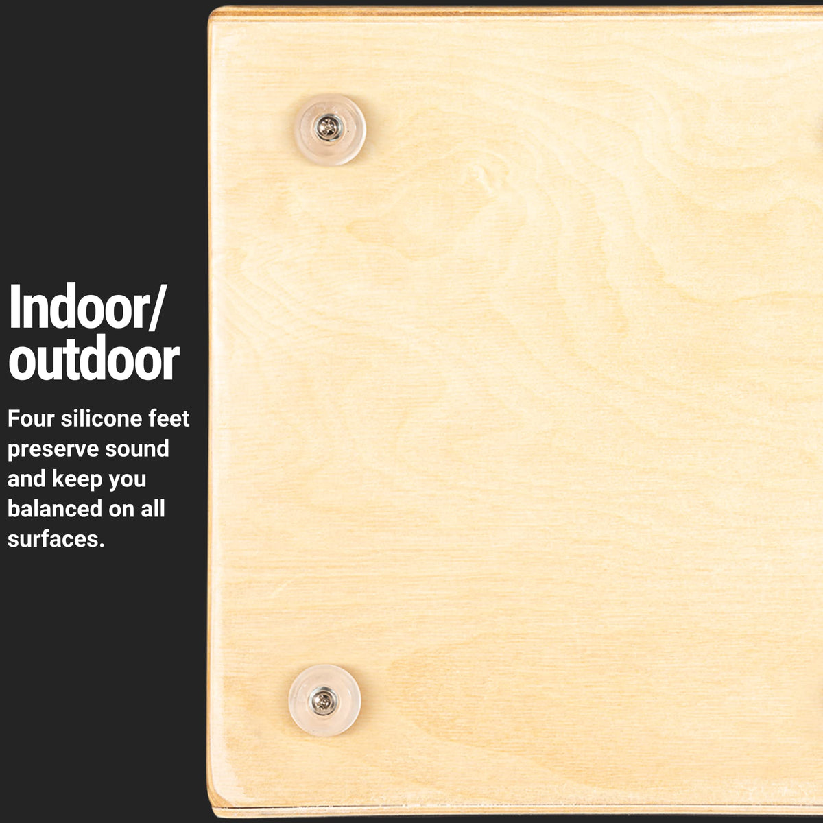 The Meinl Percussion Jam Cajon With Fixed Internal Snares Is Perfect For Playing On The Go. Its Compact Design Is Lightweight And Easy To Carry To Drum Circles Or Acoustic Gigs. Crafted In Europe From Baltic Birch Wood, The Jam Cajon Has Great Low End Punch When Played Near The Center And Dishes Out Snare Drum 'Slap' Sounds When Striking The Top Corners Of The Playing Surface. The Dual Internal Snares Are Fitted To Rest Against The Inside Of The Frontplate For A Sensitive Response. These Sounds Are Perfect For Providing The Rhythmic Foundation For Acoustic Music.
