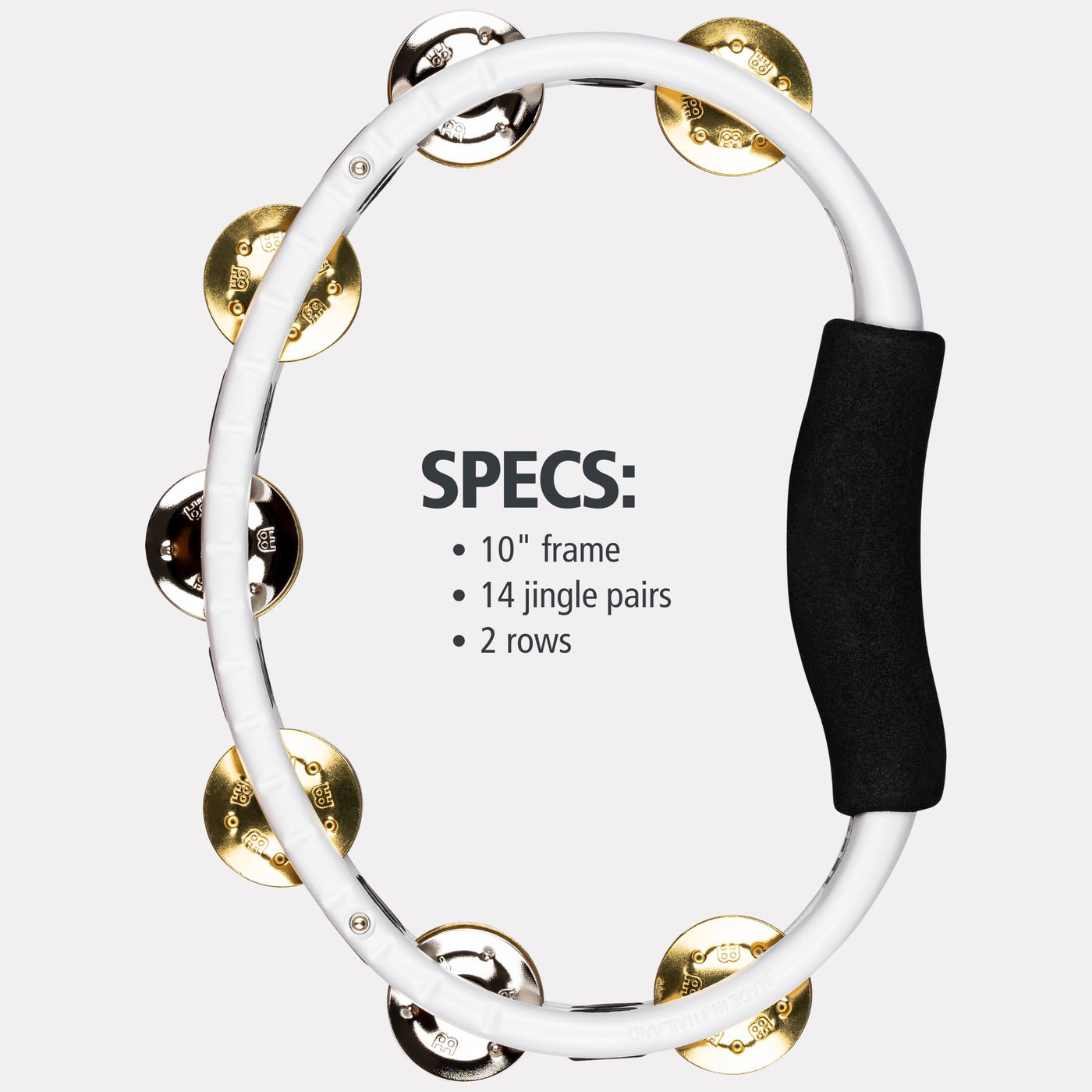 Meinl Percussion Traditional Tambourine, Handheld Half Moon Shape With Synthetic Frame � Not Made In China � Double Row Dual Alloy Jingles, 2 Year Warranty (Tmt1M Wh)