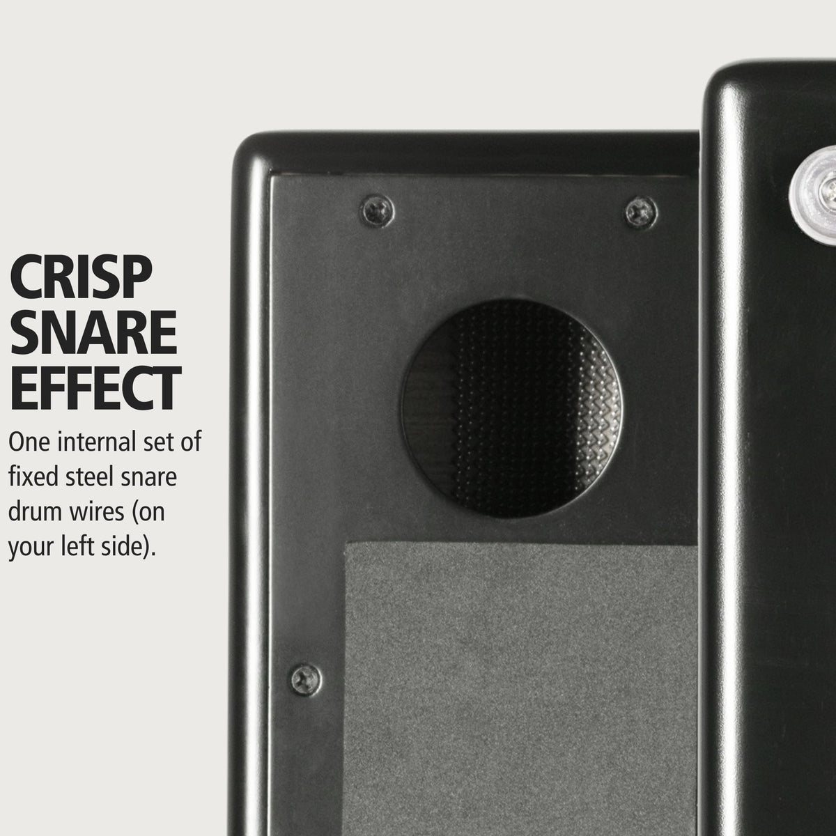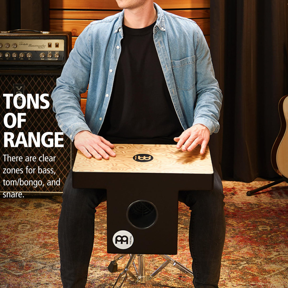 The Meinl Slap Top Cajon Is A Conceptual Step Up To A New Level. This Model Is Designed To Bring The Striking Surface Up Nearer To The Player, For A More Upright Playing Style. The Sound Projects Forward Into The Audience From The Sound Port Located On The Front Of The Instrument, Which Is Also Convenient For Microphone Placement. High And Low Tones As Well As A Snare Effect Are Built Into The Sound Board. This Cajon Has All Of The Outstanding Acoustic Properties Of Any Standard Meinl Cajon. Striking The Sides And Corners Gives More Slap And Snap Sounds, While Playing In The Middle Of The Surface Delivers Deep And Boomy Bass Punches. Soft Finger Rolls Are Also Easily Achievable With Its Ultra-Sensitive Playing Surface. Cajons Are The Perfect Instrument To Use For Softer Acoustic Gigs When A Full Drum Set Cannot Be Used.