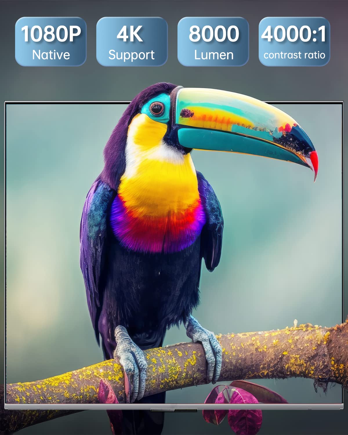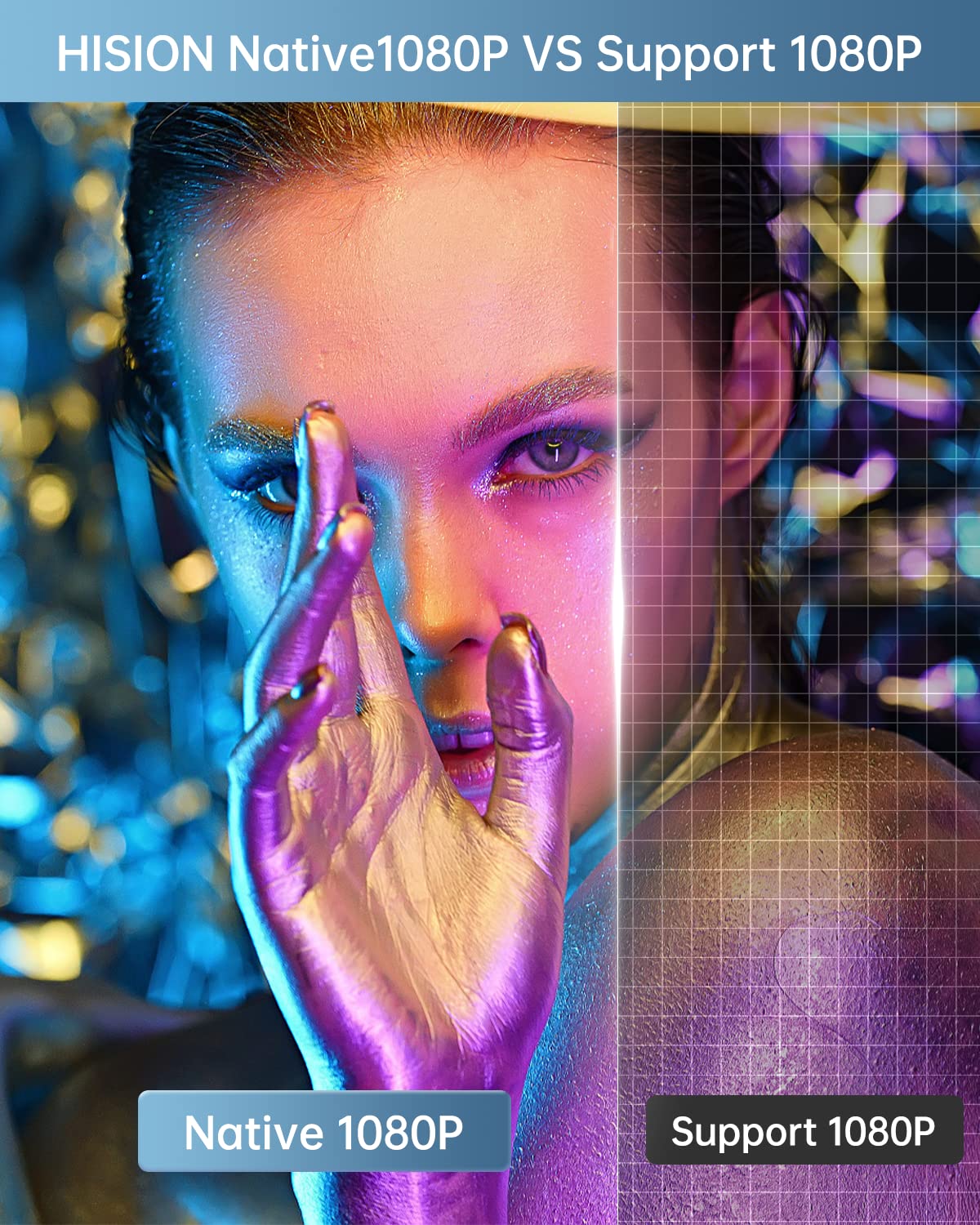 Mini Projector Native 1080P Outdoor Movie Projector, Hision 8000L Portable Home Theater 4K Support Video Projector Compatible Wi