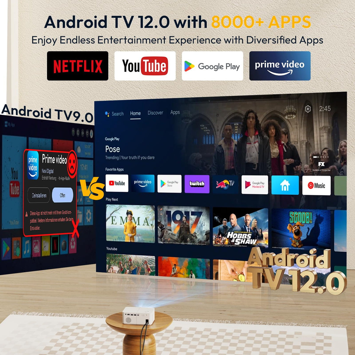 Mini Smart Projector, Xgody X2 Android 12 Portable Hd Projector 12000L 1080P Support With Wifi And Bluetooth, Electric Focus/Key