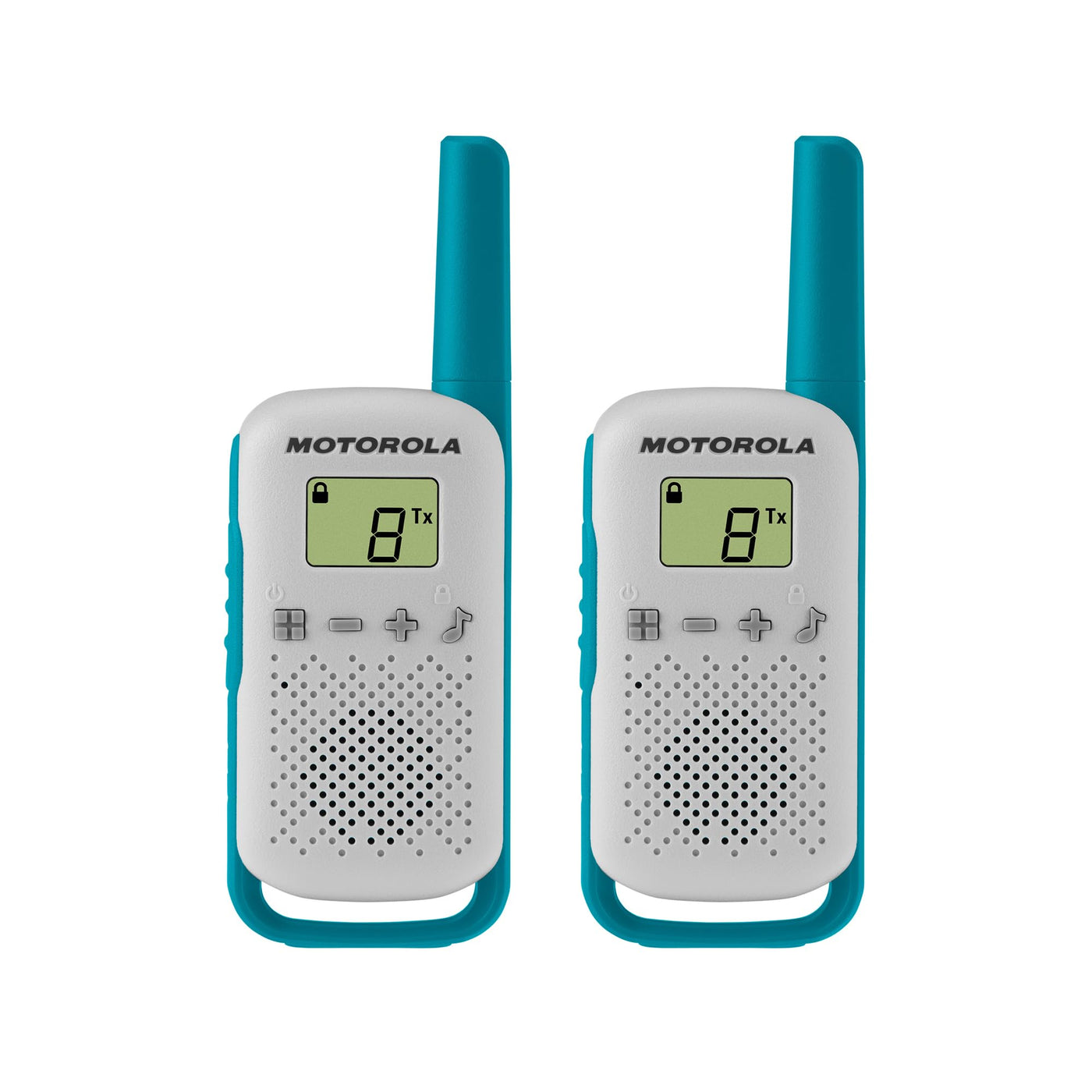 Motorola Solutions, Portable Frs, T114, Talkabout, Two Way Radios, Battery Operated, 22 Channel, 16 Mile, White/Blue, 2 Pack