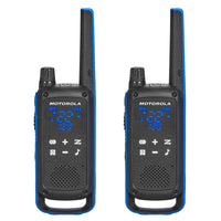 Motorola Solutions, Portable Frs, T802, Talkabout, Two Way Radios, Emergency Preparedness, Rechargable, 22 Channel, 35 Mile, Black W/Blue, 2 Pack