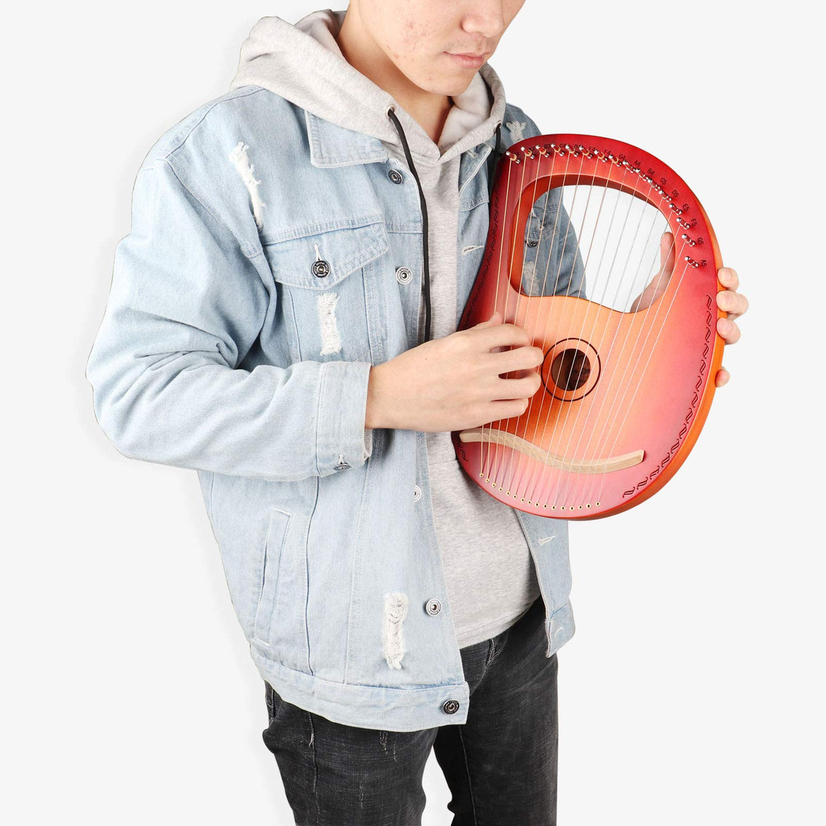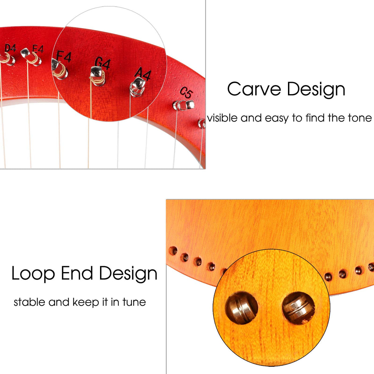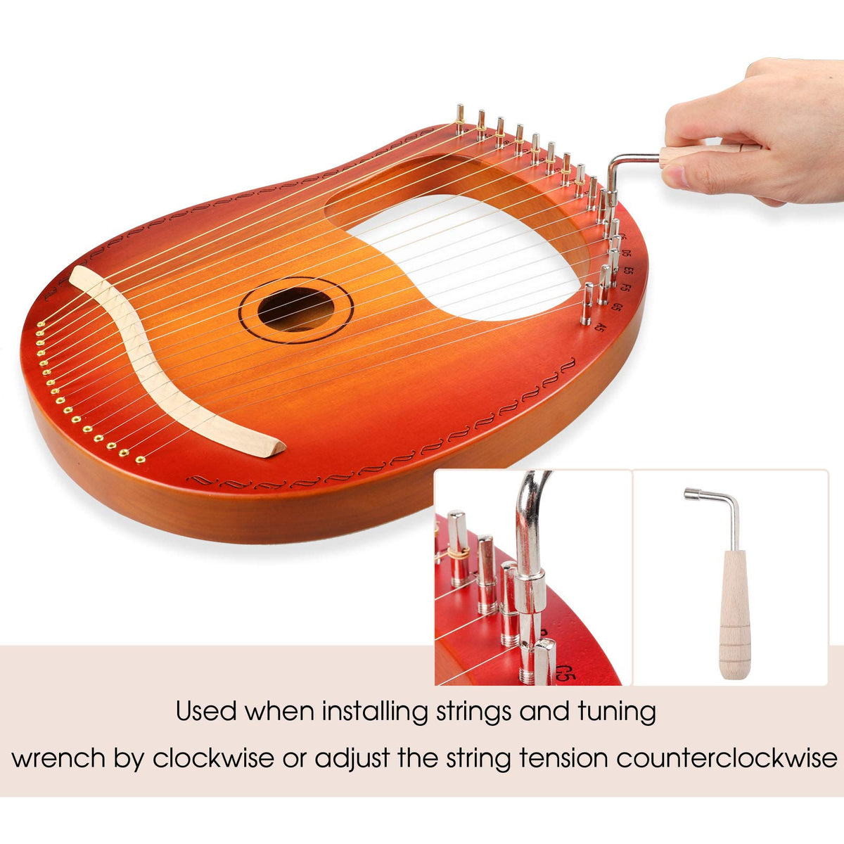 This Lyre Instrument Is Warm Voiced With A Wonderful Tone. Equipped With 16 Durable Steel Strings. Pure Treble And Warm Bass Loop End Design, Make It More Stable And Keep It In Tune. Polished Surface And Rounded Edge, Super Smooth And Delicate, More Safe And Comfort To Hold. Comes With A Set Of Strings And A Tuning Wrench, You Can Use The Wrench To Adjust The Tension Of String. It Can Make Melodious And Bright Sounds While Playing Them With Your Fingers, Which Can Relax Our Body And Mind. Compact Size And Lightweight. A Special Musical Gift For You, For Your Children, For Your Sweetheart, Or For Your Friends, Etc.