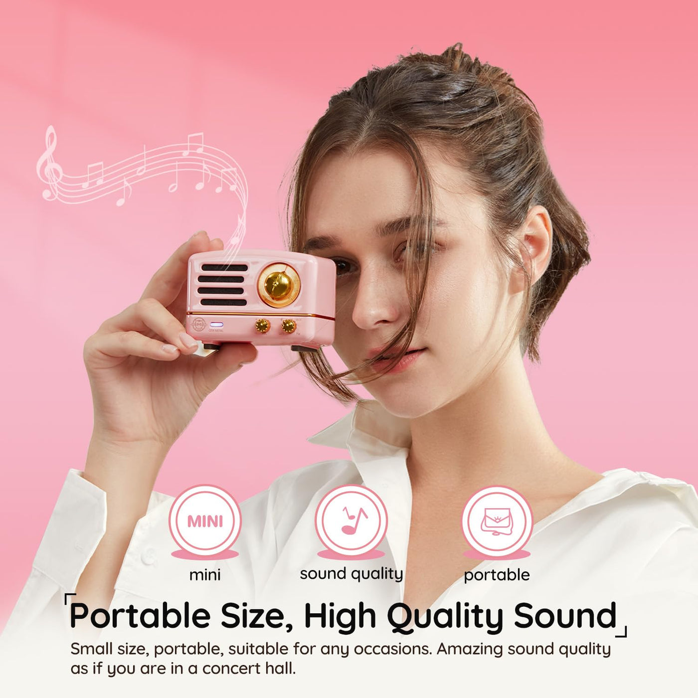 ?Fm Radio & Speaker & Aux?The Retro Bluetooth Speaker Is Compatible With Smartphones, Tablets And Other Bluetooth With Fast Connection. This Wireless Speaker Has Aux Cable, Which Can Easily Connects To Pc, Mp3, Tv Players. Also This Mini Speaker With Classic Fm Radio Function, Plug In Built-In Antenna, Then Can Easily Select Your Favorite Channel | ?Classic Retro Style?The Wireless Vintage Radio Bluetooth Speaker Adopts Classic Metal Surface, Spray Paint Process. The Small Cute Bluetooth Speaker, Its Retro Appearance Pays Tribute To Hippie Culture Of The 1960S. The Metal Tiny Radio Bluetooth Speaker Built-In Modern Technology, Muzen Vividly Interprets Perfect Combination Of Retro And Modern. Multiple Color Options: Red, Green, Pink, Black, Blue | ?Carry Easily & 10H+ Playtime?The Wireless Bluetooth Radio Speaker Built-In 1000Mah Rechargeable Battery. Bluetooth Play Time Up To 10 Hours, Fm Mode Up To 20 Hours. Packed In A Small Retro Suitcase, You Can Pick This Cute Portable Speaker Up Go Anywhere, Time On Road Will Never Be Lonely | ?Small Body & Loud Audio?The Small Portable Speaker Is Equipped With High-Fidelity Full-Range Speaker, Has Very Warm And Full Sound. The Wireless Radio Speaker, Its Transmission Distance Is Up To 33 Feet, Sound Is Very Penetrating Even Outdoor. This Kawaii Metal Speaker Audio Output Is Handled By 5-Watt High-Power Amplifier For Lossless Wireless Sound | ?Best Gift Choice?Muzen Otr Metal Retro Bluetooth Speaker Will Be The Best Speaker For Cooking, Party, Yard, Campfire, Hiking, Biking Or Beach. The Small Portable Wireless Bluetooth Speakers Has Unique Vintage Look, Perfect For Decoration Or Collection. The Kawaii Bluetooth Speakers Can Bring Big Surprise To Your Lovers On Birthdays, Valentine'S Day,Mothers' And Fathers' Day, Thanksgiving Day, Christmas, And Other Special Days