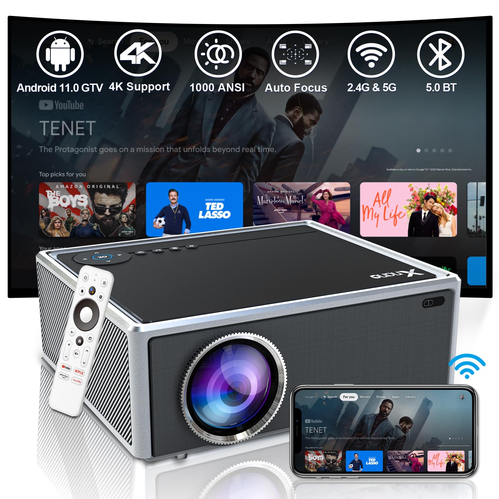?Netflix Officially Licensed & 8K/4K Video Decode Support & Auto Focus? Projector With 5G Wifi Bluetooth, 1000Ansi Native 1080P