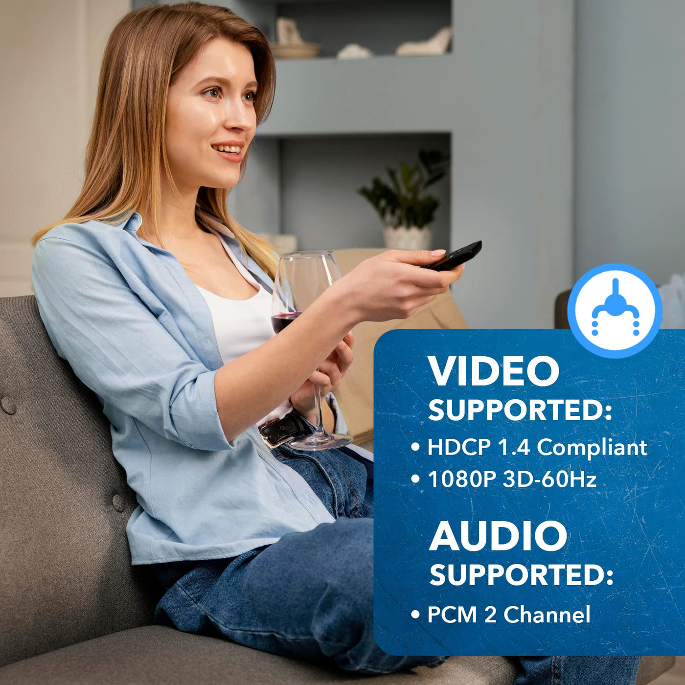 Q: How do I switch between HDMI sources?A: You can easily switch between HDMI sources using the included IR remote control or the front panel buttons on the device.