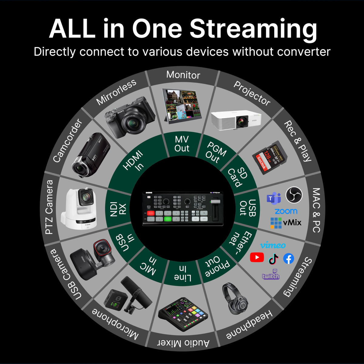 Osee Gostream Deck Pro Hdmi Live Stream Switcher, Video Mixer Switcher 6 Hdmi, 2 Usb, 8 Macro Buttons, Supersource, Three Streams Simultaneously, Phone Out, Uvc & Ndi Updatable