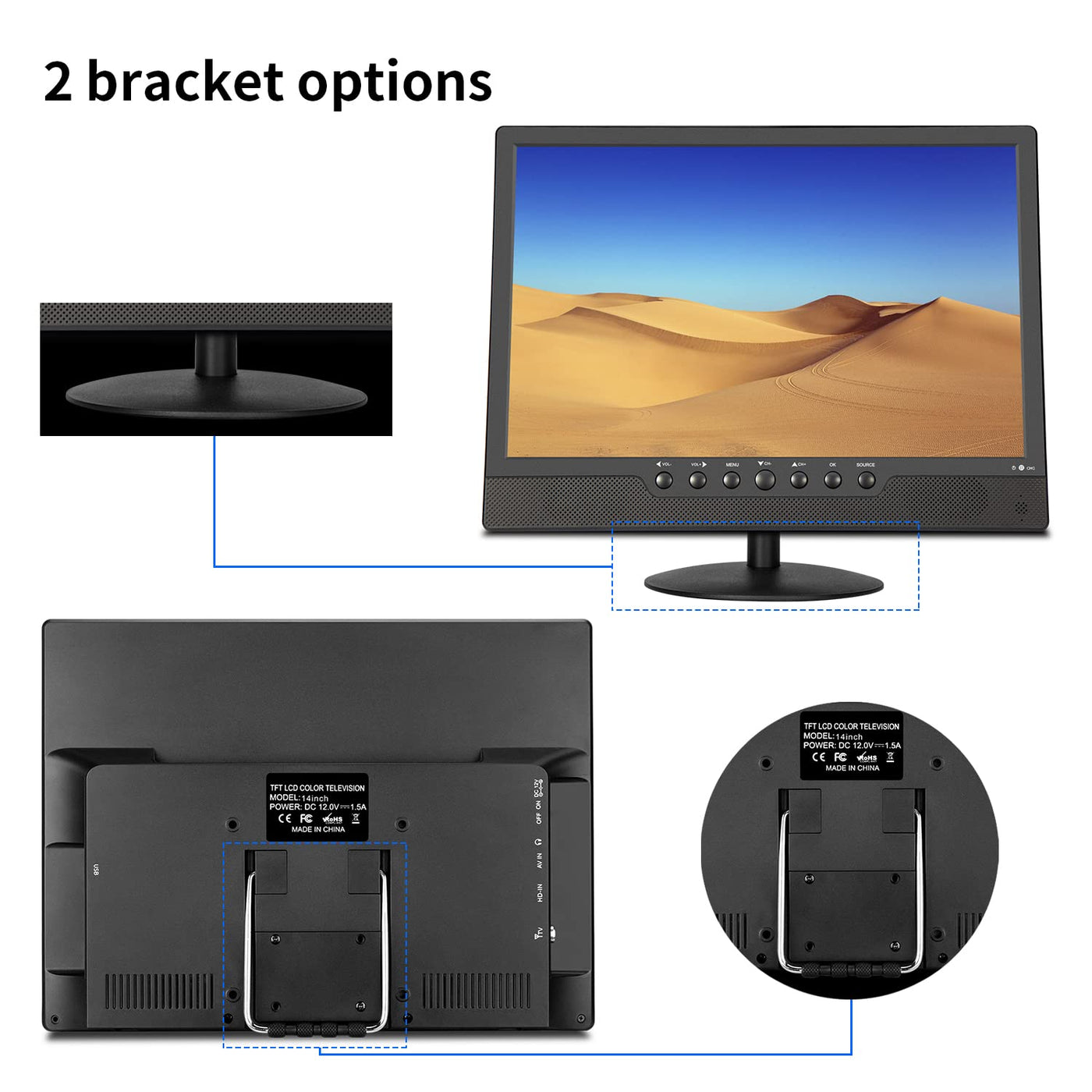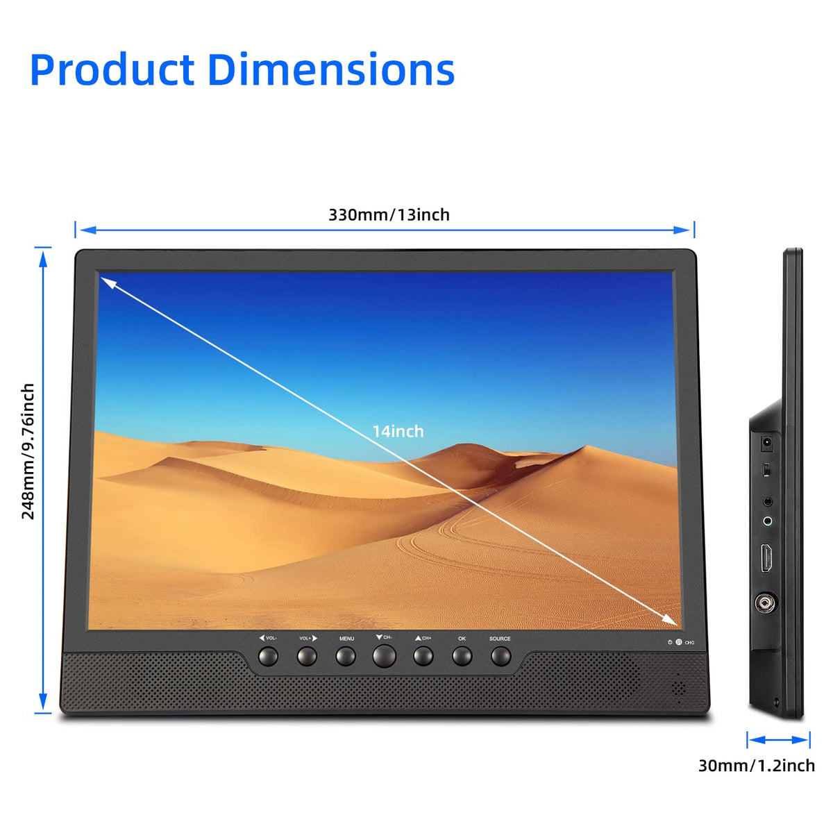 14.1Inch Portable Tv Built-In Rechargeable Battery 3000Mah,Store Electricity.100% Volume Can Be Play About 3Hrs,60% Volume Can Be 2.5 Hrs.A Car Charger And A Wall Charger.Travel Is Small And Easy To Carry. Let You Watch Your Favorite Shows Anytime, Anywhere,At Home Or On The Go.13.3Inches,Resolution: 1440 X 900, Ratio: 16:10,Built-In Digital Tv Tuner: Atsc,Features: Av Input Jack, Earphone Jack,Built-In Two Speaker,Support Format:Avi,Mp3,Wma,Jpeg Photo Etc, Note: If You Have Any Questions Or Problems When Using The Product, Please Feel Free To Contact Us. We Will Reply To You In 24 Hours And Offer You A Satisfactory Solution.Your Satisfaction Is Our Greatest Pursui
