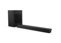 2.1 Channesl Bring Richer, Deeper, Clearer Sound To Your Favorite Movies And Shows. The Compact Wireless Subwoofer Delives Rich Bass. While Two Midrange Drivers And Two Tweeters Combine To Deliver Beautifuly Balanced Sound With Crisp Dialogue.