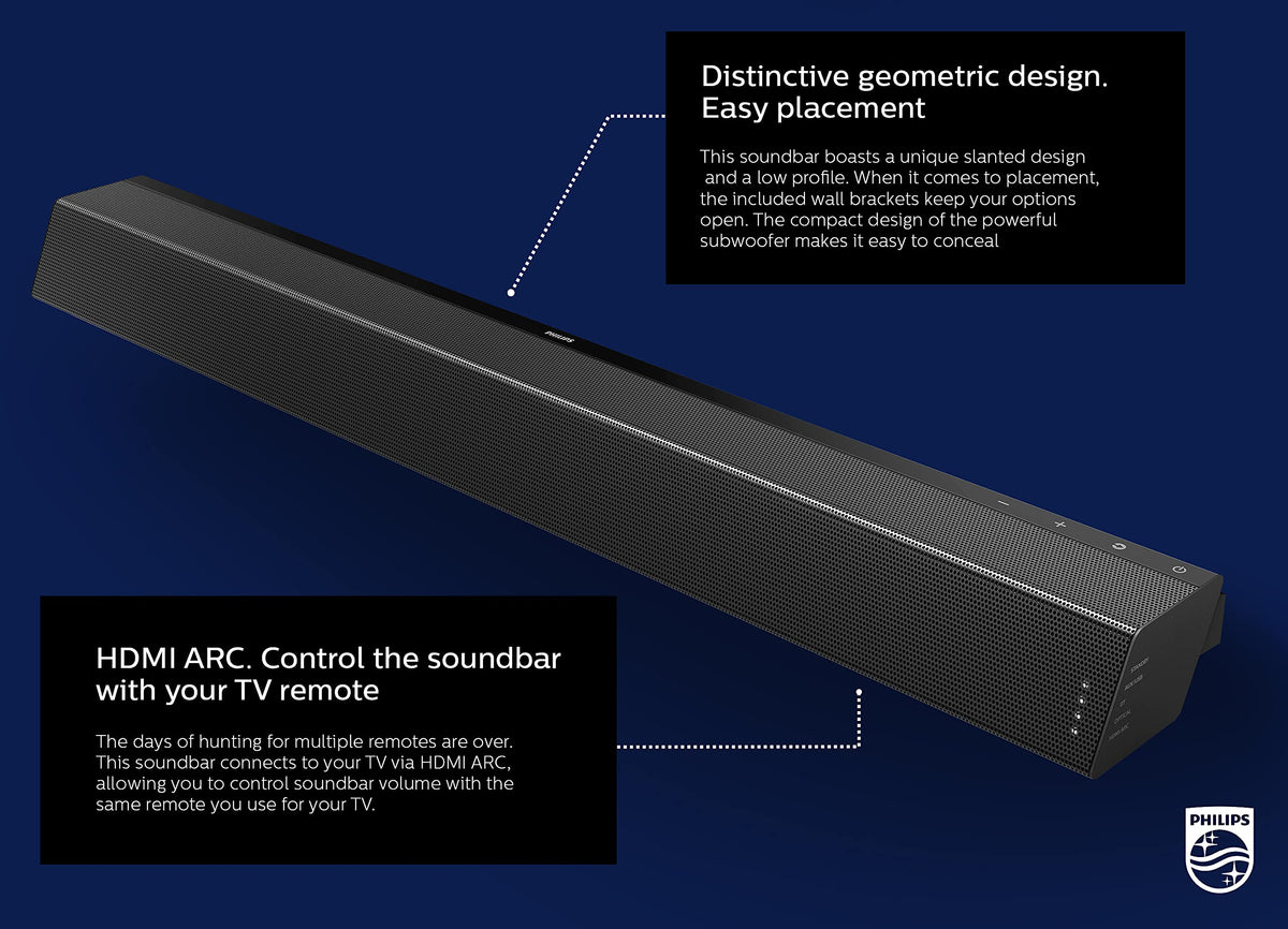 Q: Is the Philips B7305 compatible with HDMI ARC?A: Yes, the Philips B7305 soundbar features HDMI ARC connectivity, allowing you to control the soundbar’s volume with your TV remote, simplifying your setup.