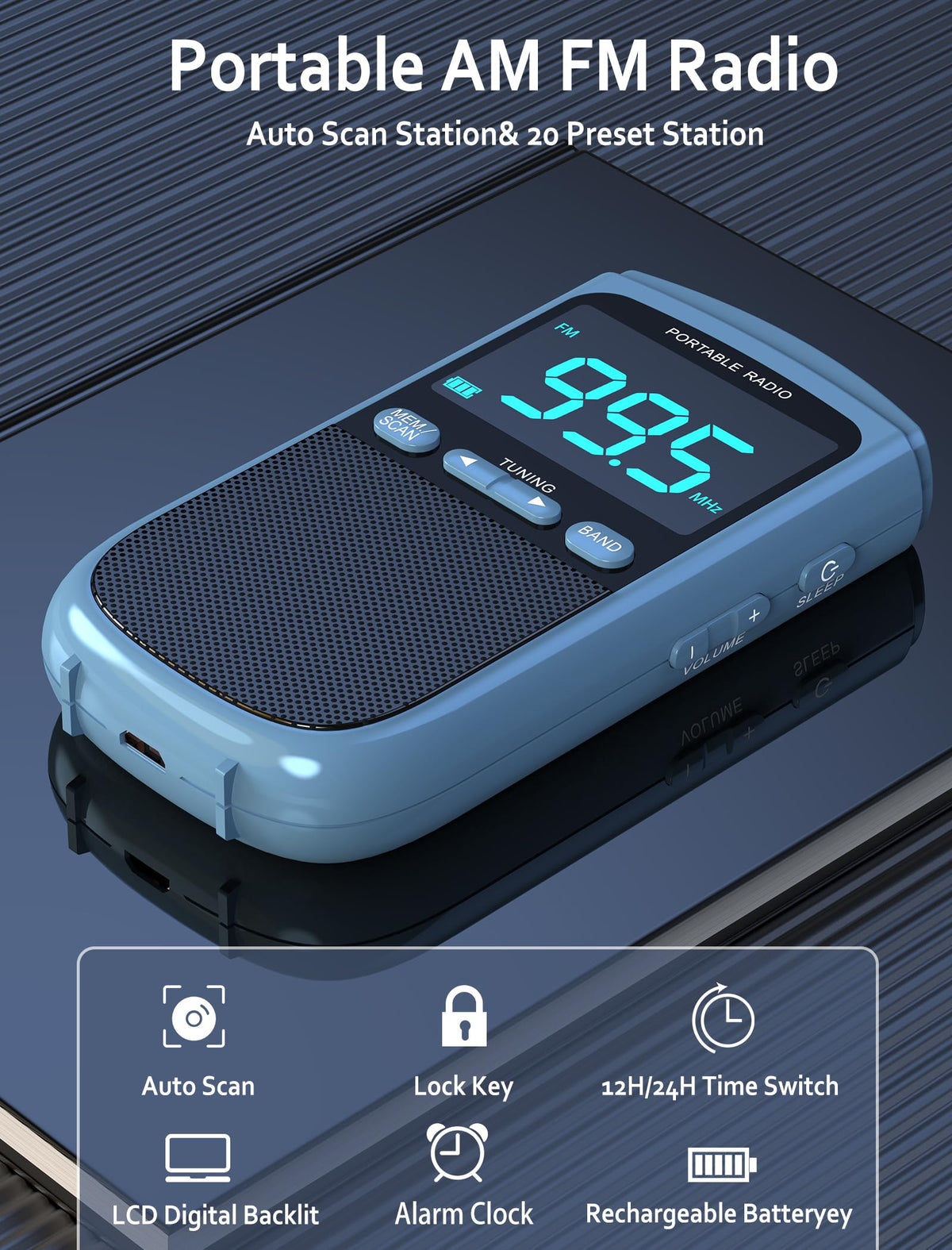 1.High Quality Reception Portable Am/Fm Radiothe Perfect Companion For All Your Outdoor Adventures - The Portable Radio! This Versatile Walkman Radio Is Designed To Keep You Connected To Your Favorite Stations, No Matter Where You Are.The Portable Radio Is A Must-Have Accessory For Anyone Who Loves To Stay Connected On The Go. It'S Easy To Use, Reliable, And Packed With Features That Make It The Perfect Choice For All Your Outdoor Adventures.We Offer A Lifetime Warranty On Our Am/Fm Radios And Provide You With 24/7 World-Class Customer Service.2.What You Get From Usnot Only Muliti-Function Digital Am/Fm Radio With 3.5Mm Earphones, Lanyard, And A Usb Cable You Get But Also 12 Month No-Pressure Product Exchange And Money Back Guarantee. If There Are Any Problem Or Misunderstanding, Please Feel Free To Contact At Anytime,We Will Be Always Here To Assist You.3.Lcd Display With Best Receptionwith Its Powerful Am/Fm Tuner, This Rechargeable Radio Picks Up All Your Favorite Stations With Crystal-Clear Reception. Supports Ultra-Wide Signals In Both Fm (87-108 Mhz) And Am (520-1710 Khz) Frequency Bands.It Also Features An Easy-To-Read Digital Display, Which Shows The Time, Station Frequency, And Other Important Information.The Built-In Speaker Delivers Crisp And Clear Sound, So You Can Enjoy Your Favorite Music And Talk Shows Without Any Distortion.