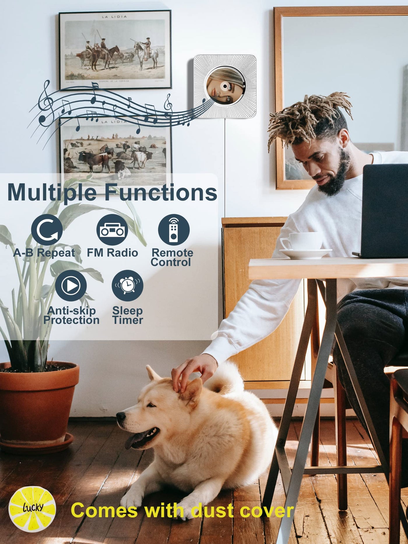 ?Latest Multiple Functions? Check This True Practical Wall Mountable Cd Player To Work Like Bluetooth Hifi Sound Speaker, Fm Radio, Home Boombox Music Player, Usb Drive/ Tf Card Player And Aux Audio Player. Compatible With Most Cds Formats: Cd, Cd-R, Cd-Rw, Mp3, Wma, Wav. Has 3.5 Mm Aux Input/Output, Headphone Jack, , Usb, Sd Port. A Great Gift For Every Music Lover. | ?Innovation & Flexible? Packed With Both Wall Mounted Kit And Desk Stand, You Can Hang The Cd Music Player On Wall Or Place It On The Desktop Of Living Room, Bedroom, Kitchen Etc. Its Creative Pull Switch Function Make You Don