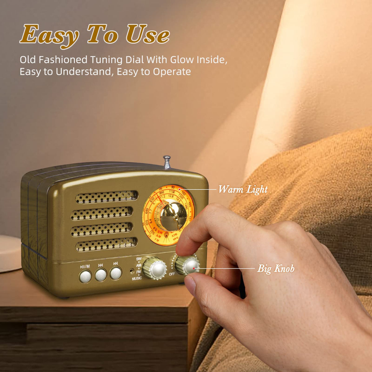 Prunus J 160 Retro Transistor Radio Battery Operated Am Fm Sw Radio, Small Rechargeable Portable Radio With 1800Mah Li Ion Batte
