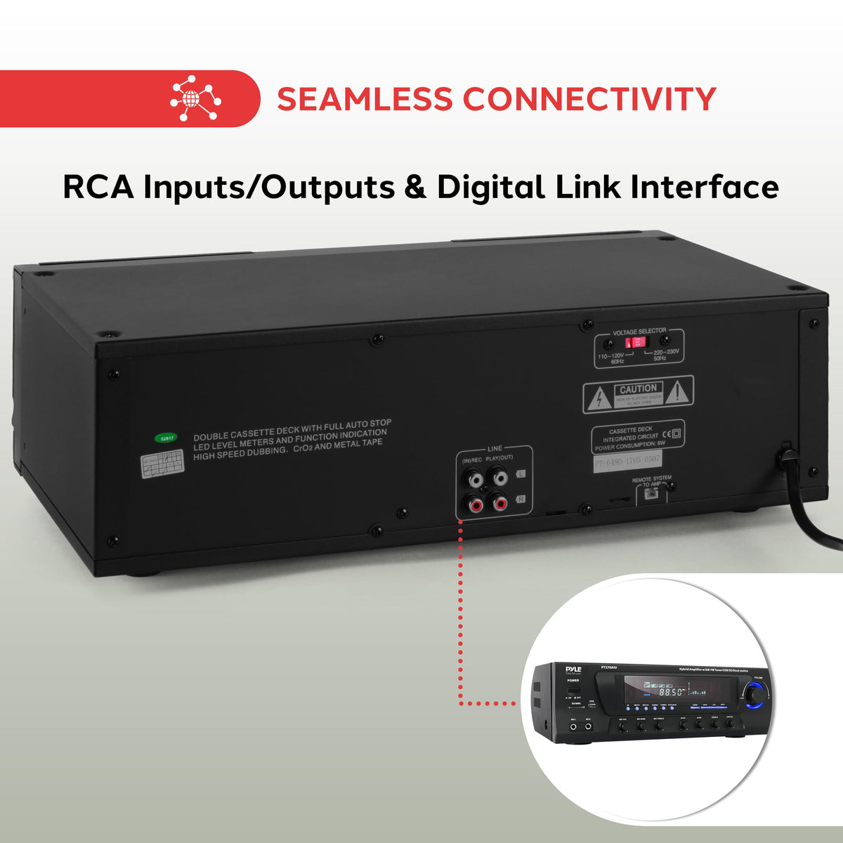 Pyle Home Digital Tuner Dual Cassette Deck | Media Player | Music Recording Device With Rca Cables | Switchable Rack Mounting Ha