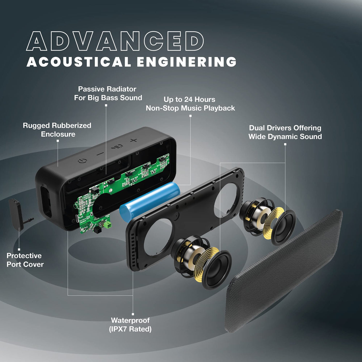 Qfx Bt Zx1 10+ Watt Tws Bluetooth Ipx7 Waterproof Certified Rechargeable Portable Speaker With Punchy Bass, Zero Distortion, 24 Hour Battery Life, Hands Free Calling, Black