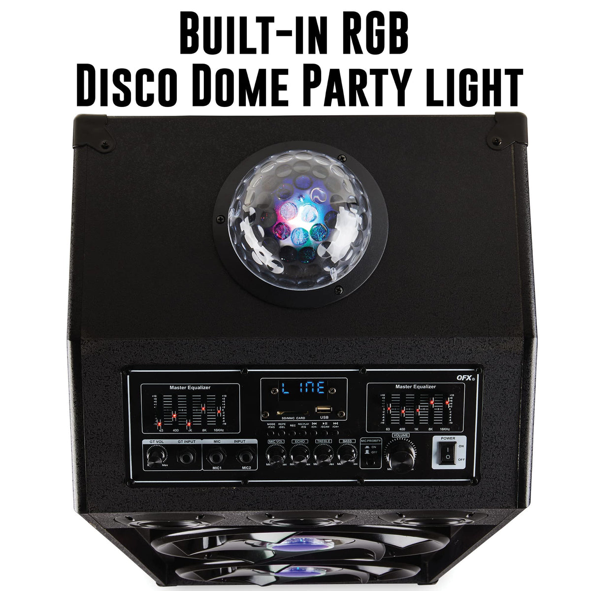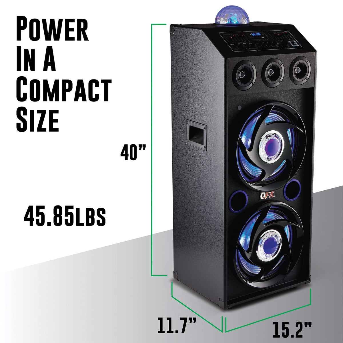 Qfx Sbx 412207Bt Tws Bluetooth Cabinet Speaker With Dual 12' Woofers, Led Party Lights, Fm Radio, Usb/Tf Card Ports, Aux Input, Blue