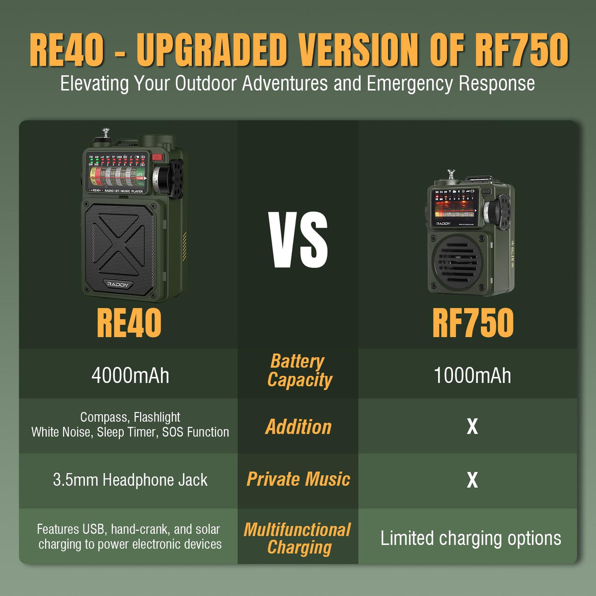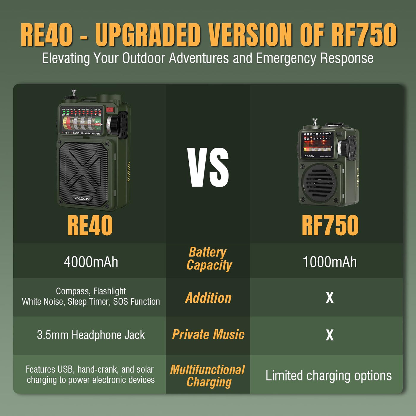 Raddy Re40 Portable Shortwave Radio Fm/Am/Sw/Wb Receiver, 4000Mah Emergency Radio With Bluetooth And Noaa Alerts, Pocket Radio R